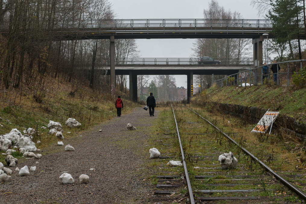 14. Идем над железной дорогой. Мне всегда казалось странным, что ж/д на Петербург по Финляндии идет в глубине страны, чуть ли не в сотне километров от берега, в то время как можно было бы гораздо короче через прибрежные города (Порвоо, Ловийса, Котка), как, собственно, идет автодорога. Смысл в этом по идее был стратегический, чтоб на железную дорогу нельзя было напасть со стороны моря. Ну и рельеф здесь, возможно, был попроще; здесь железная дорога может идти в основном вдоль гряды Салпаусселькя, в то время как между Порвоо и Коткой рельеф настолько непростой, что даже очень нужную автомагистраль там (точнее, на участке Коскенкюля-Котка) построили лишь в 2013 году.