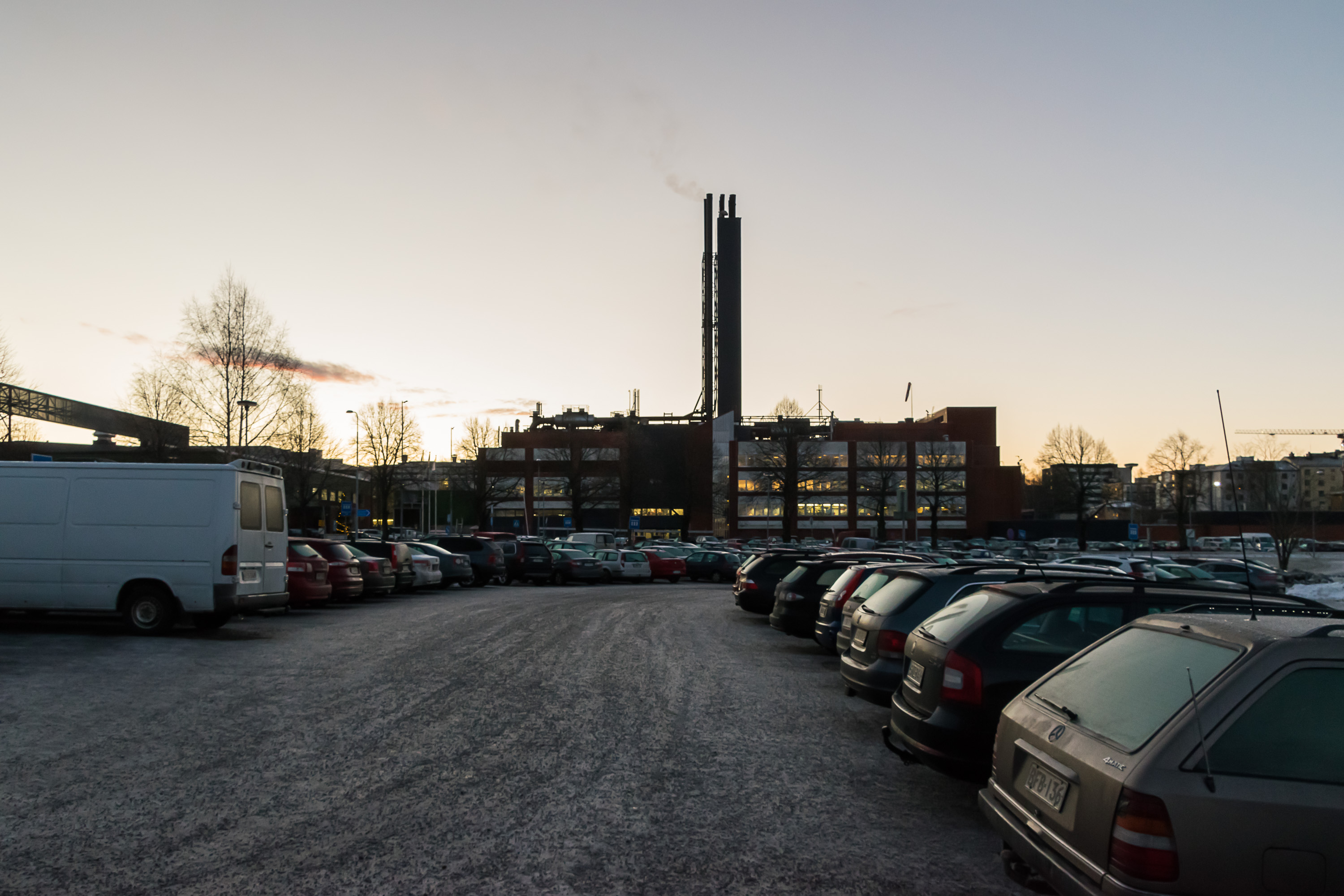 Вааса, как и почти все финские города, безусловно, город победившего автомобиля. Я не бывал в Штатах, но, как мне представляется, в этом плане Финляндия (ну как в общем–то и Швеция и Норвегия) на них довольно похожа — многоэтажная застройка занимает не слишком большую площадь (3x1.5 км в Ваасе, и то с большой натяжкой, ну и штук пять от силы отдельных мелких микрорайонов многоэтажек), но вокруг обширная субурбия. В Ваасе она тянется непрерывно минимум километров на пять почти во все стороны, но очень многие живут гораздо дальше — например, один мой коллега ездит с деревни на Кваркенском архипелаге в 40 км (с архипелага есть мост, но все же), а другой вроде как вообще из маленького города Якобстад в 100 км. И если работать не в центре, а, например, на местных крупных заводах — Вяртсиля (судовые двигатели), ABB (электрооборудование) — то тебе, конечно, без проблем будет обеспечено парковочное место у работы.