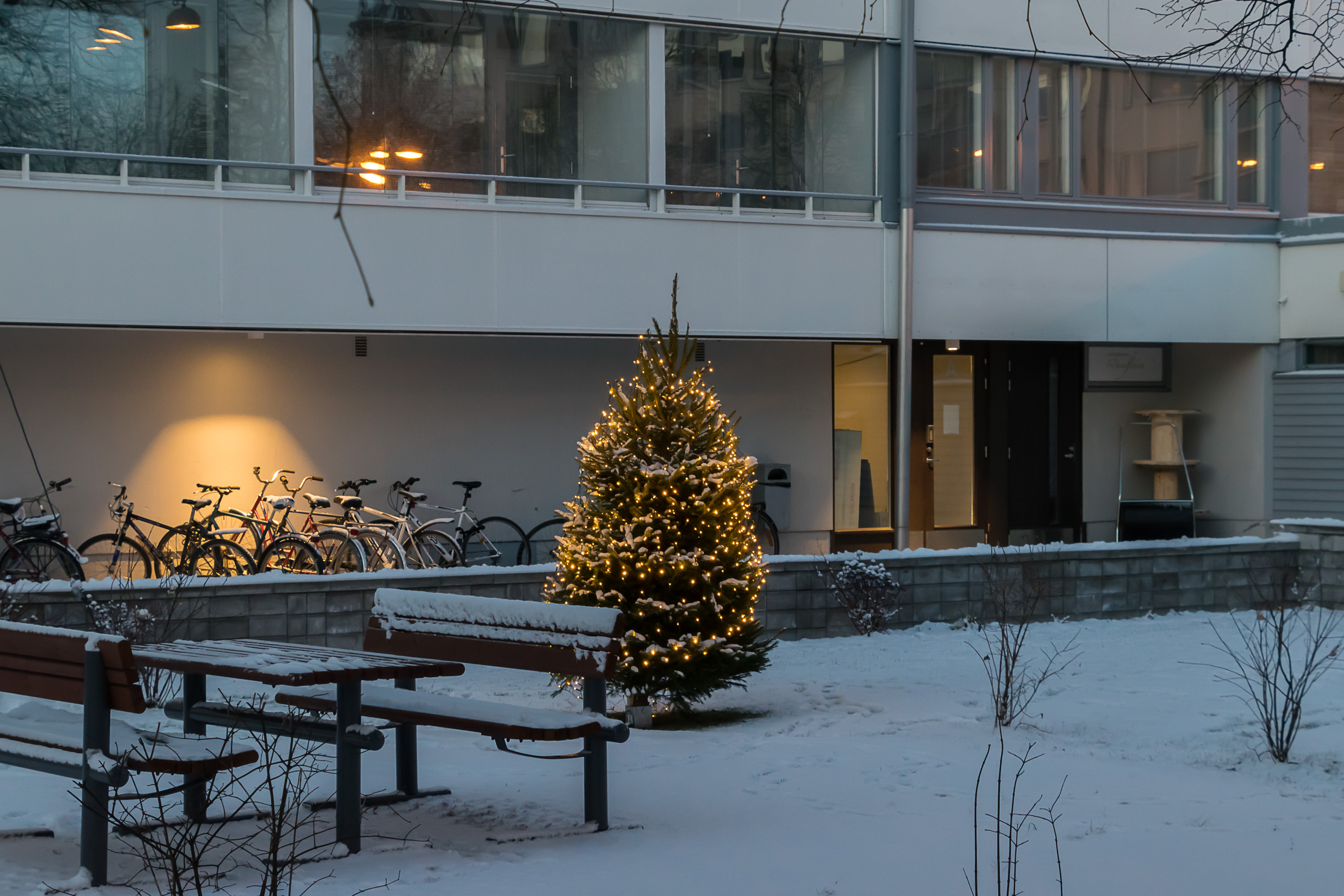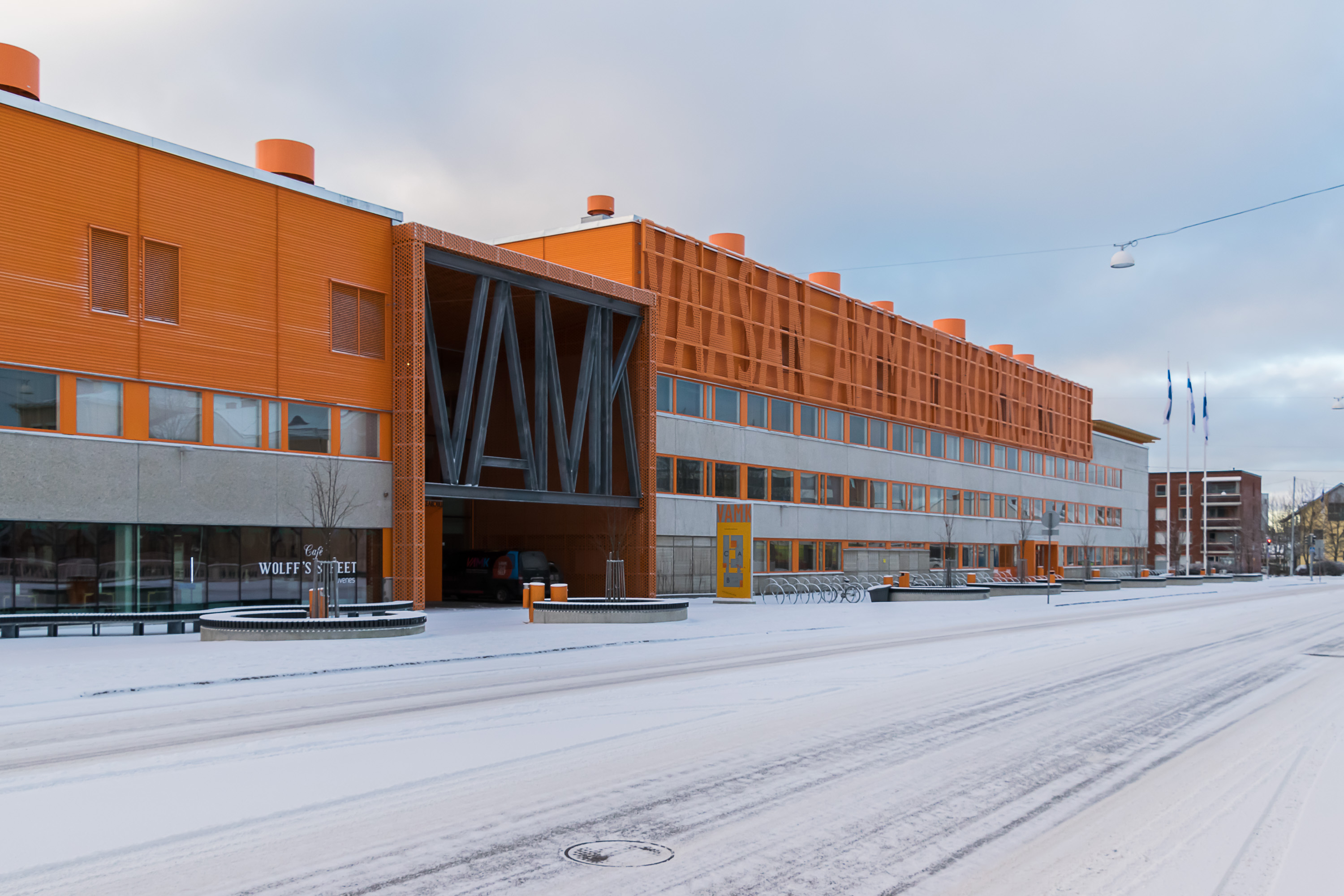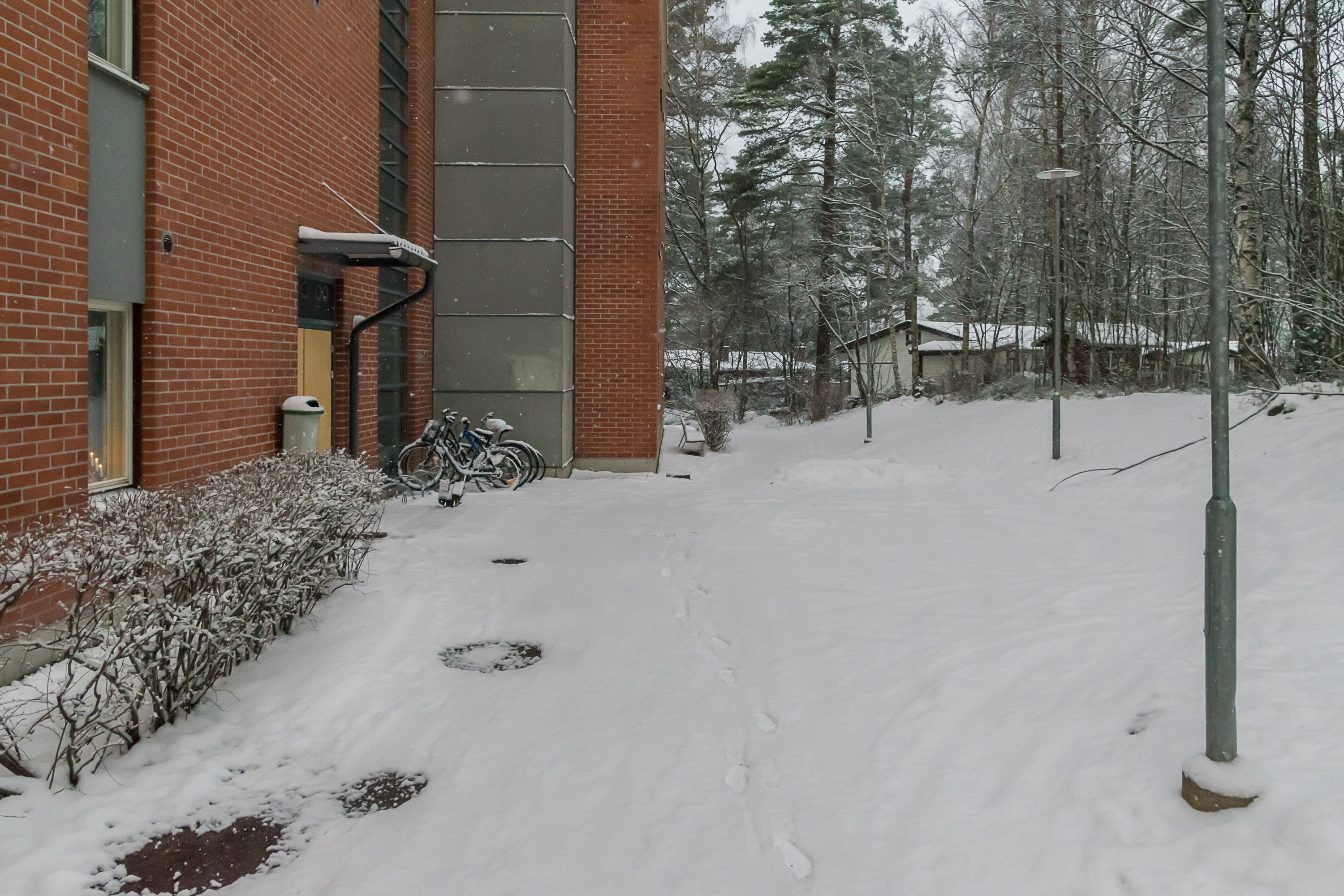 Нельзя не упомянуть, конечно, пресловутый велосипедный вопрос. Вааса на самом деле реально очень удобный для велосипедов город: расстояния как раз самое то (не очень большие, но пешком тоже, если ты не в центре живешь, сильно далеко не уйдешь), рельефа мало, людей за пределами центра мало, можно везде ездить по этим широким пустым тротуарам и дорожкам, на проезжую часть соваться не надо нигде вообще (ну если не в 20+ км от города жить). У машин проезжую часть под велодорожки не отбирают, и так ездить есть где. Тут также не считается, что велосипед — это только для лета или только для хипстеров. Зимой ездят, довольно массово, и даже больше, чем пешком ходят — практически на всех фото с тротуарами видны следы велосипедов. Но наверное все же меньше, чем летом — не могу точно сказать, насколько. Я сам хочу купить велосипед, но к лету, начинать зимой как–то боязно (последний раз на велосипед садился пять лет назад).