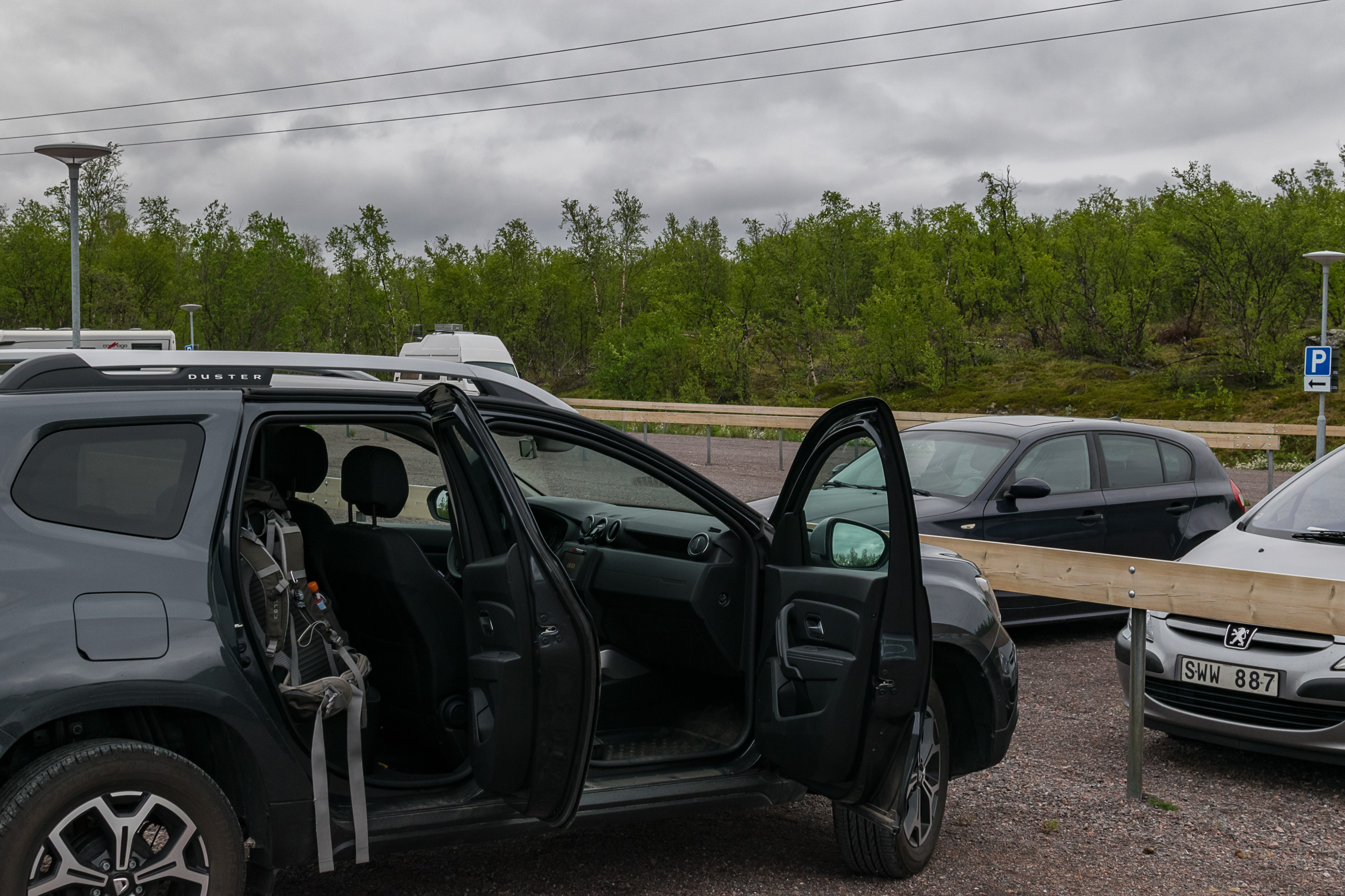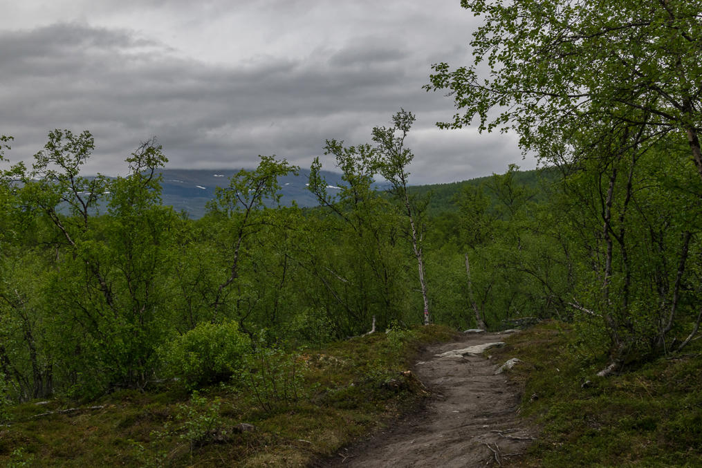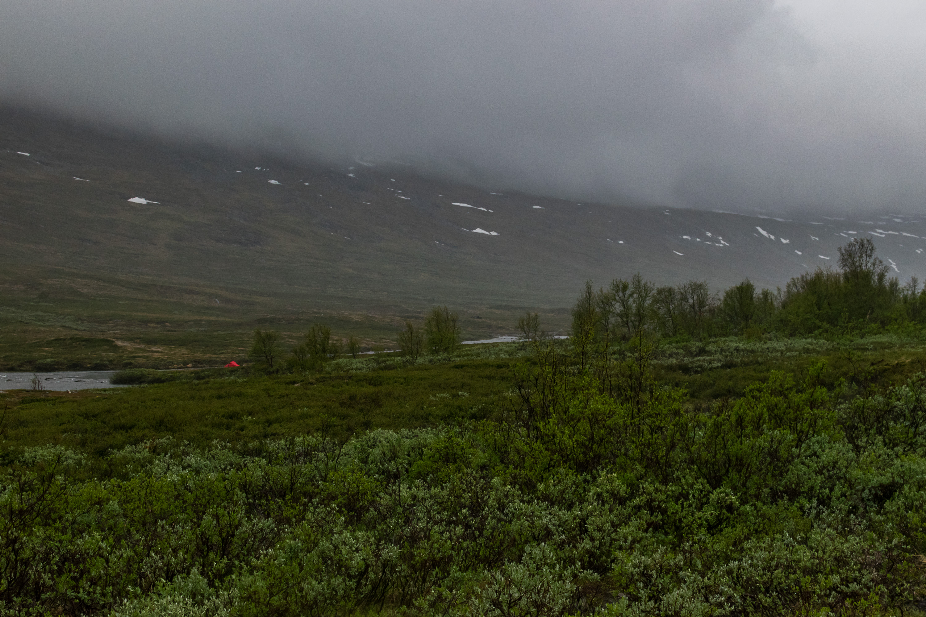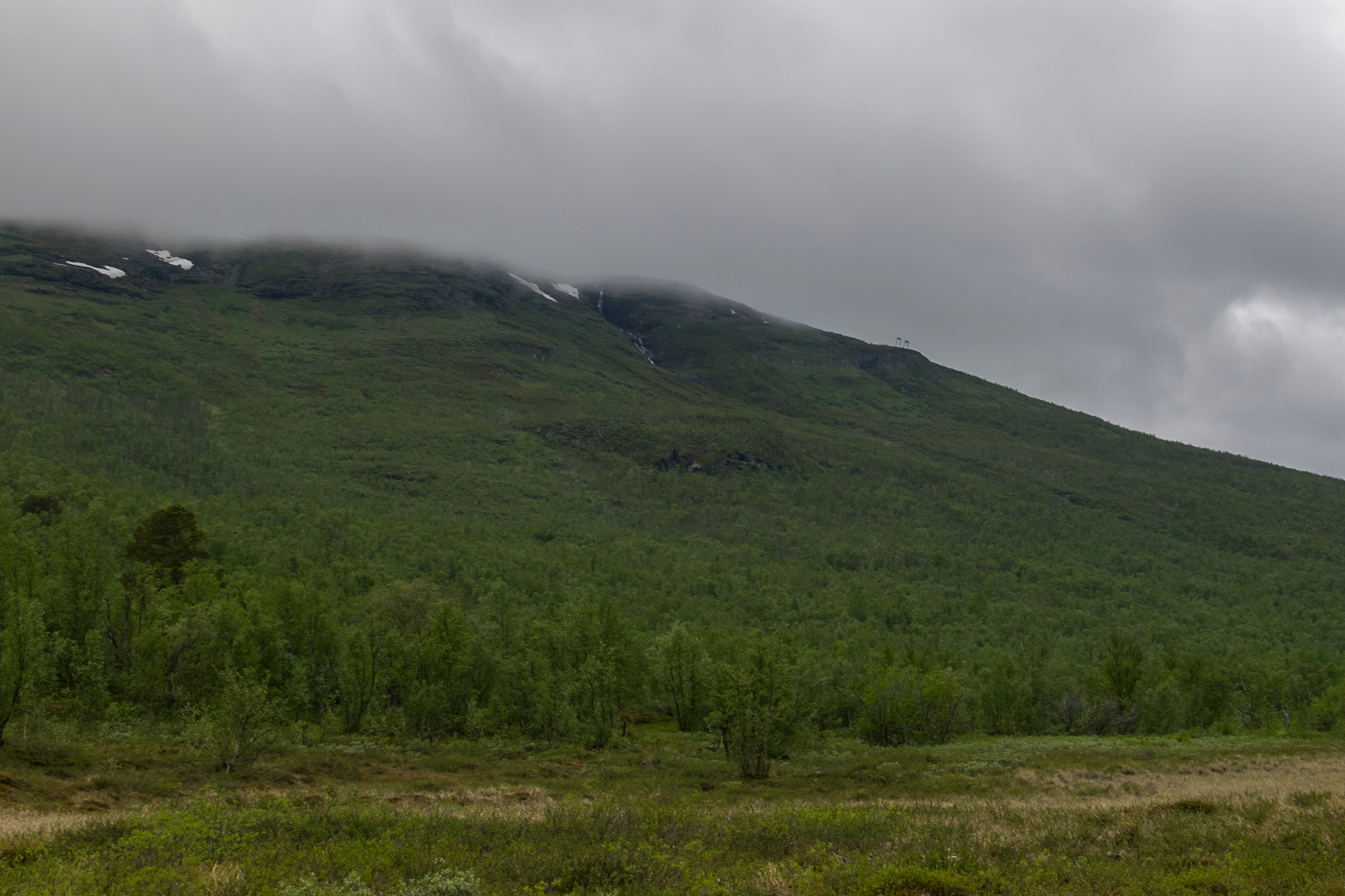 С самого начала мая и по сей день в Скандинавии было исключительно жарко и сухо, но Юханнус стал одним из немногих исключений. Прогнозы погоды выглядели не очень оптимистично — сильные дожди по всей Швеции, включая Абиско. И действительно, когда я был в Хапаранде, начался дождь, какое-то время достигший такой силы, что стало даже тяжело ехать на машине, а перспектива идти куда-то в такую погоду выглядела крайне незавидно. Я даже подумал, не бросить бы эту идею, но все же поехал дальше, надеясь на лучшее. Ливень и впрямь скоро закончился, но пасмурная погода и дожди от мелких до средней паршивости продолжили преследовать меня на протяжении всего похода.