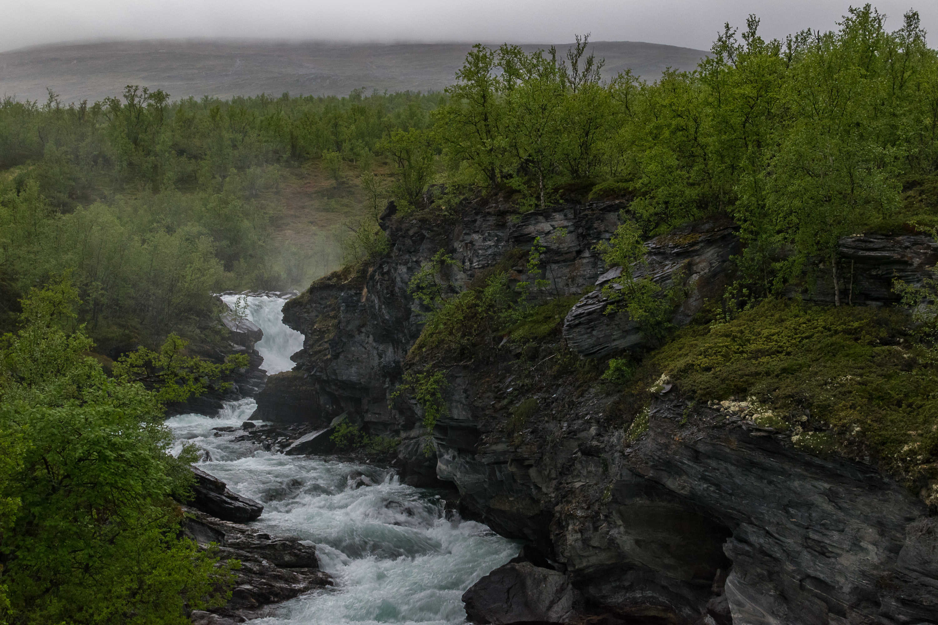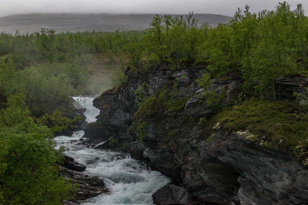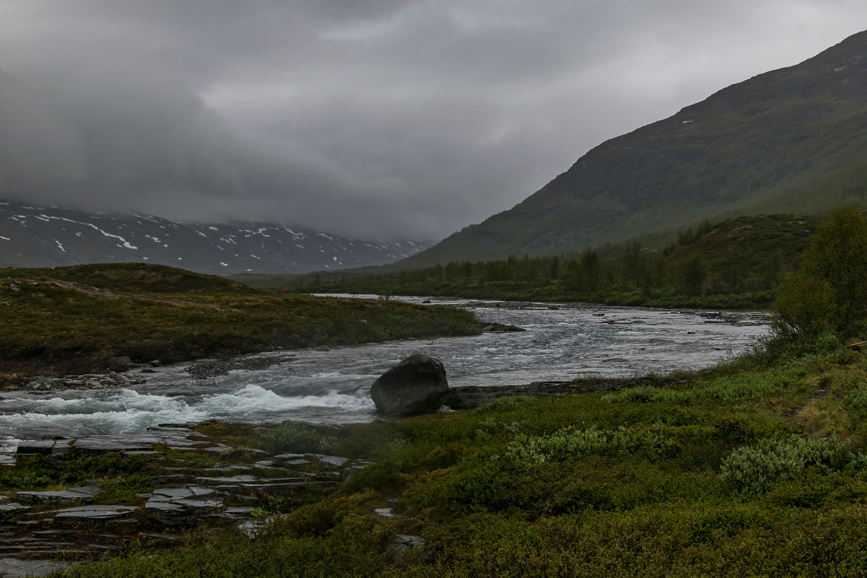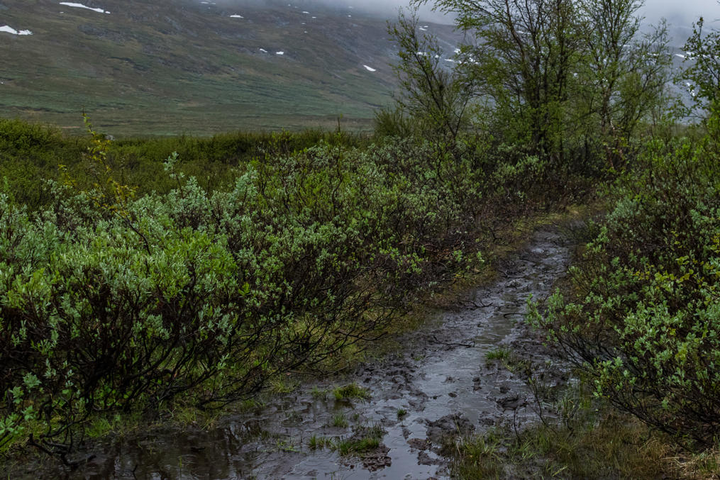 С самого начала мая и по сей день в Скандинавии было исключительно жарко и сухо, но Юханнус стал одним из немногих исключений. Прогнозы погоды выглядели не очень оптимистично — сильные дожди по всей Швеции, включая Абиско. И действительно, когда я был в Хапаранде, начался дождь, какое-то время достигший такой силы, что стало даже тяжело ехать на машине, а перспектива идти куда-то в такую погоду выглядела крайне незавидно. Я даже подумал, не бросить бы эту идею, но все же поехал дальше, надеясь на лучшее. Ливень и впрямь скоро закончился, но пасмурная погода и дожди от мелких до средней паршивости продолжили преследовать меня на протяжении всего похода.
