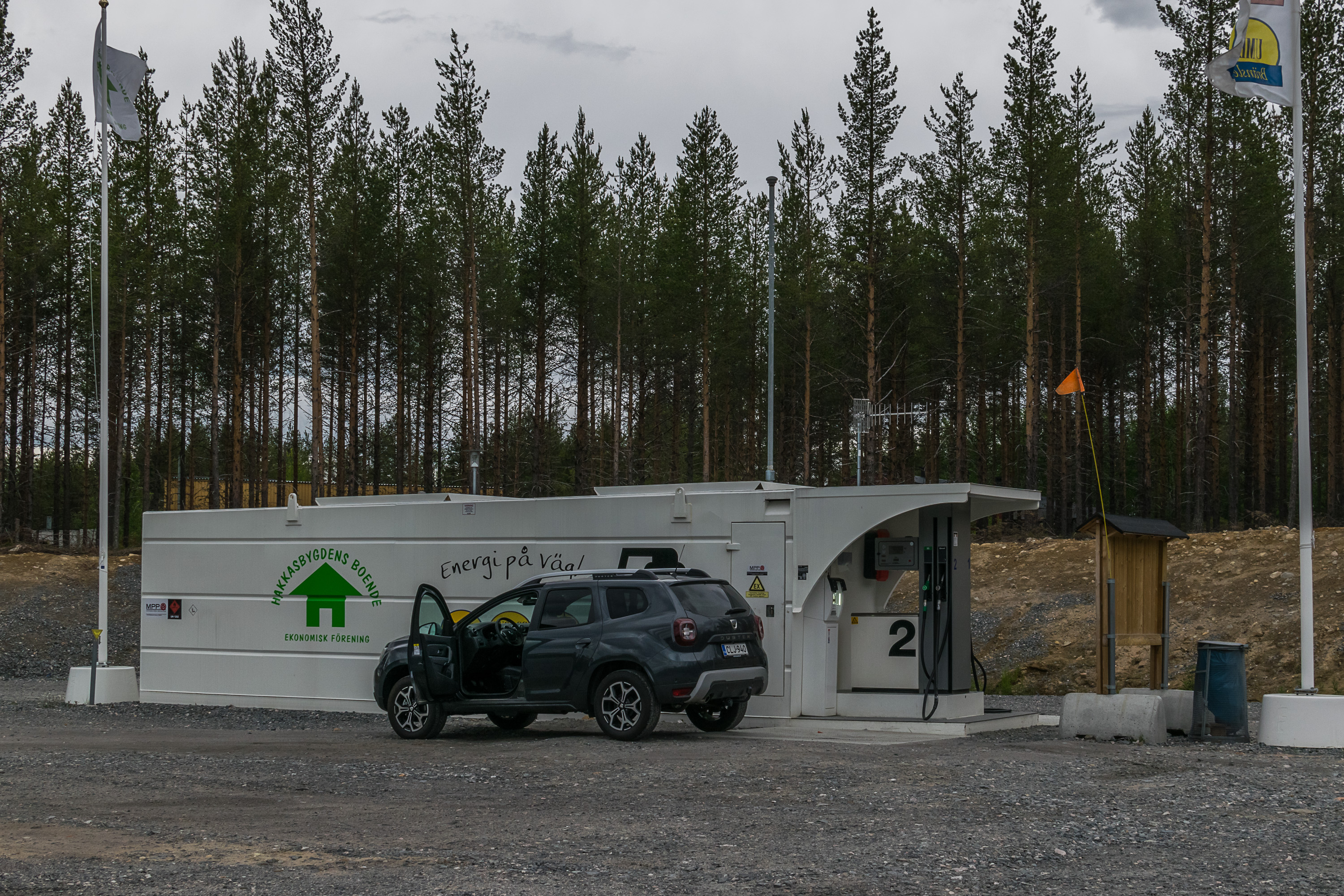 6. Минималистичная заправка где-то ближе к Елливаре. Расход у этого Дастера (мотор 1.2 л турбо, бензиновый) довольно хороший, порядка 6.4 л/100 км по трассе, если без пассажиров и на всю катушку кондиционер не врубать. Правда, шкала бензина крайне неточная, так что мне вечно кажется, что я трачу бензина больше, чем должно быть.