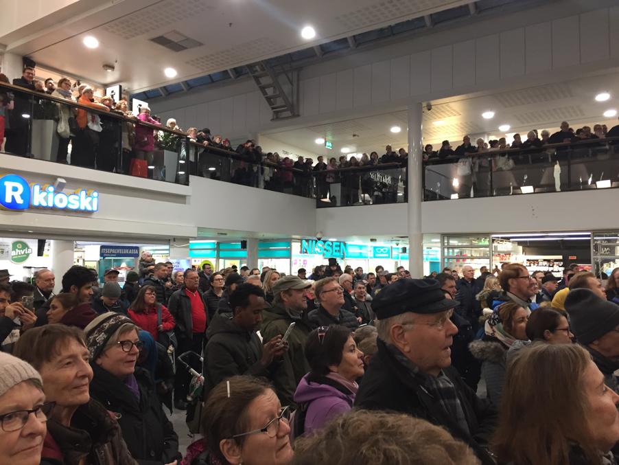 А на втором этаже, в сетевой забегаловке "Коти–Пицца", все это время продолжали есть финны, абсолютно не заинтересовавшиеся прибытием первого лица страны :)