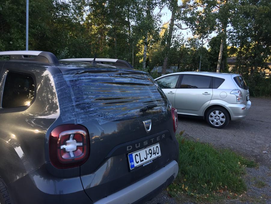 Больше всего времени занял следующий этап — ожидание страховой — больше двух недель. Хорошо, что была еще осень, а не зима. Стекло я заклеил нормально, дождь внутрь не капал, но воздух уличный попадал — вряд ли для интерьера машины было очень полезно находиться в осенней сырости неделями, но вроде плесень не выросла :) В целом за время между происшествием и ремонтом я успел купить зимнюю резину и съездить разок на выходные за 600 км в Лапландию. Судя по всему, страховая на самом деле просто потеряла письмо со справкой, которое я им отправлял, потому что в какой–то момент прислали SMS и попросили вновь прислать эту справку. (Почему–то со мной в Финляндии постоянно происходят такое, что мои заявления/записи на прием/письма и т. п. теряют.) Возможно, имело смысл звонить и пинать страховую, я не люблю таким заниматься :)