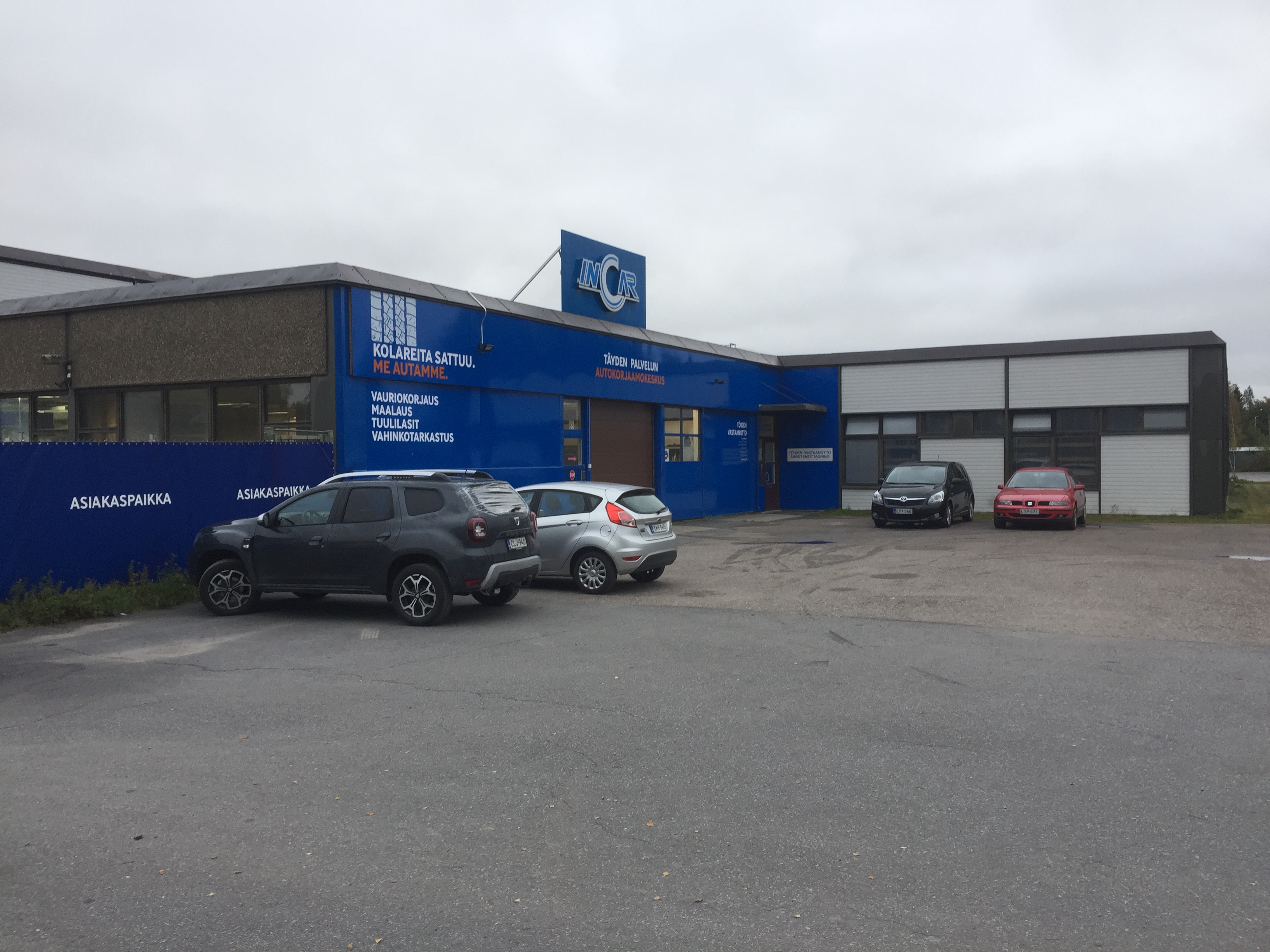 "Оценка повреждений" звучит как что–то довольно серьезное (а по–фински еще страшнее, vahinkotarkastus), и я долго гуглил, пытаясь понять, где это лучше делать, и будет ли это мне что–то стоить. (Коллеги–финны, как оказалось, сами с этими вопросами знакомы на удивление крайне смутно, даром что передвигаются в основном на машинах и многие в жизни не пользовались автобусами.) Выбрал в итоге практически первый попавшийся сервис, на сайте которого сказано, что они делают vahinkotarkastus без предварительной записи, и поехал туда. Как и положено уважающему себя автосервису, он находится в промзоне с красивым названием Лийсанлехто, между барахолкой и какими–то заводиками. Но выглядит вполне пристойно. Называется InCar, вообще у них вроде большая сеть по всей стране, но я о них до этого не слышал.