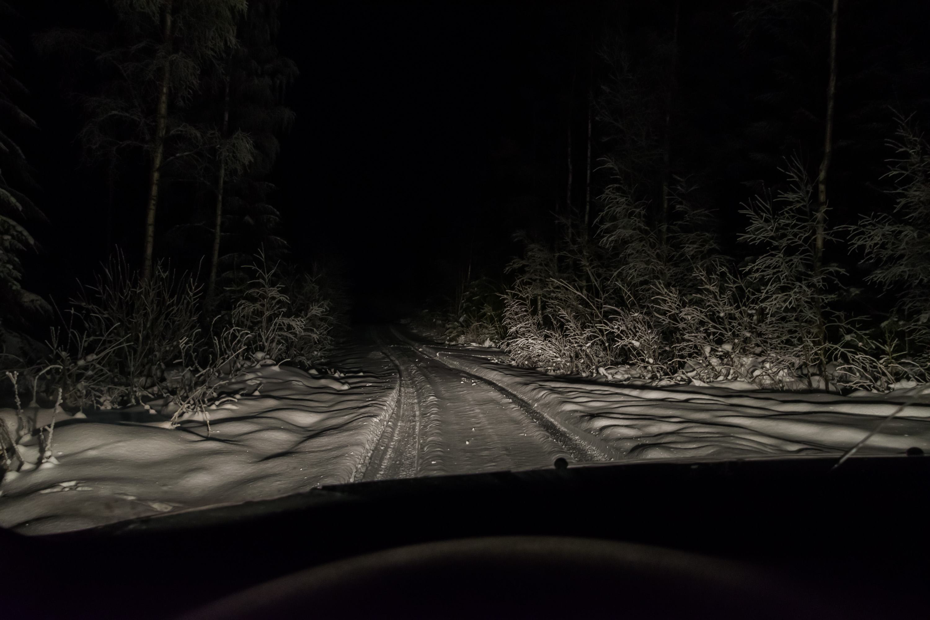 Январский вечер. Остров Вестерё, архипелаг Максму, Вёро, Остроботния, Западная Финляндия. Последние пару километров дороги не чистят от снега зимой — они ведут только к десятку дач да к малоиспользуемому концу пешего маршрута по острову, куда обычно приезжают с другого конца.