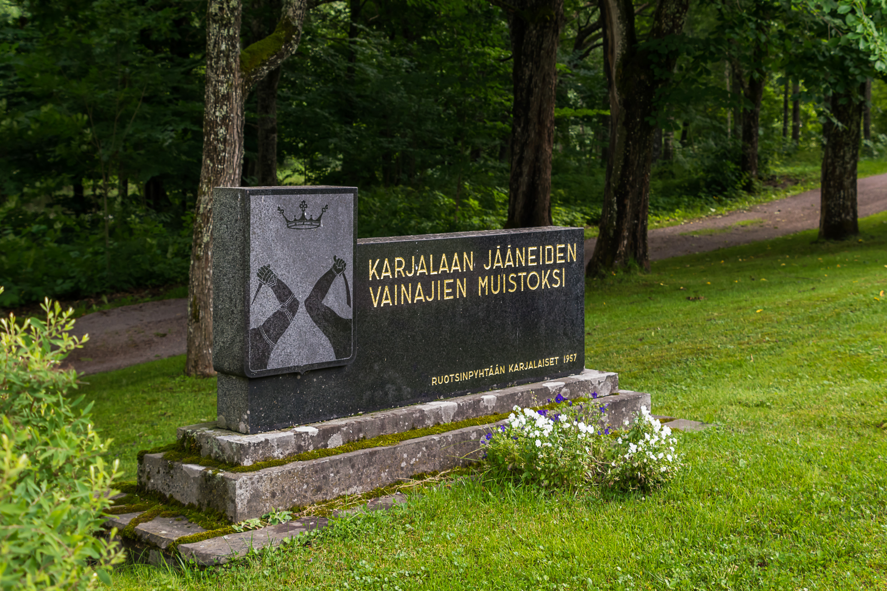 Переселенцы во многих местах в течение последующих десятилетий поставили на местных кладбищах памятник могилам, оставшимся в Карелии — на праздники, когда в Финляндии принято поминать усопших, переселенцы и их потомки приходят и ставят свечи к этим памятникам, которые символизируют все те могилы, которые больше не было возможности посетить. Такие памятники сейчас есть на многих кладбищах, не только в крупных городах. Этот, например, сфотографирован в поселке Руотсинпюхтяя в Восточном Уусимаа.
