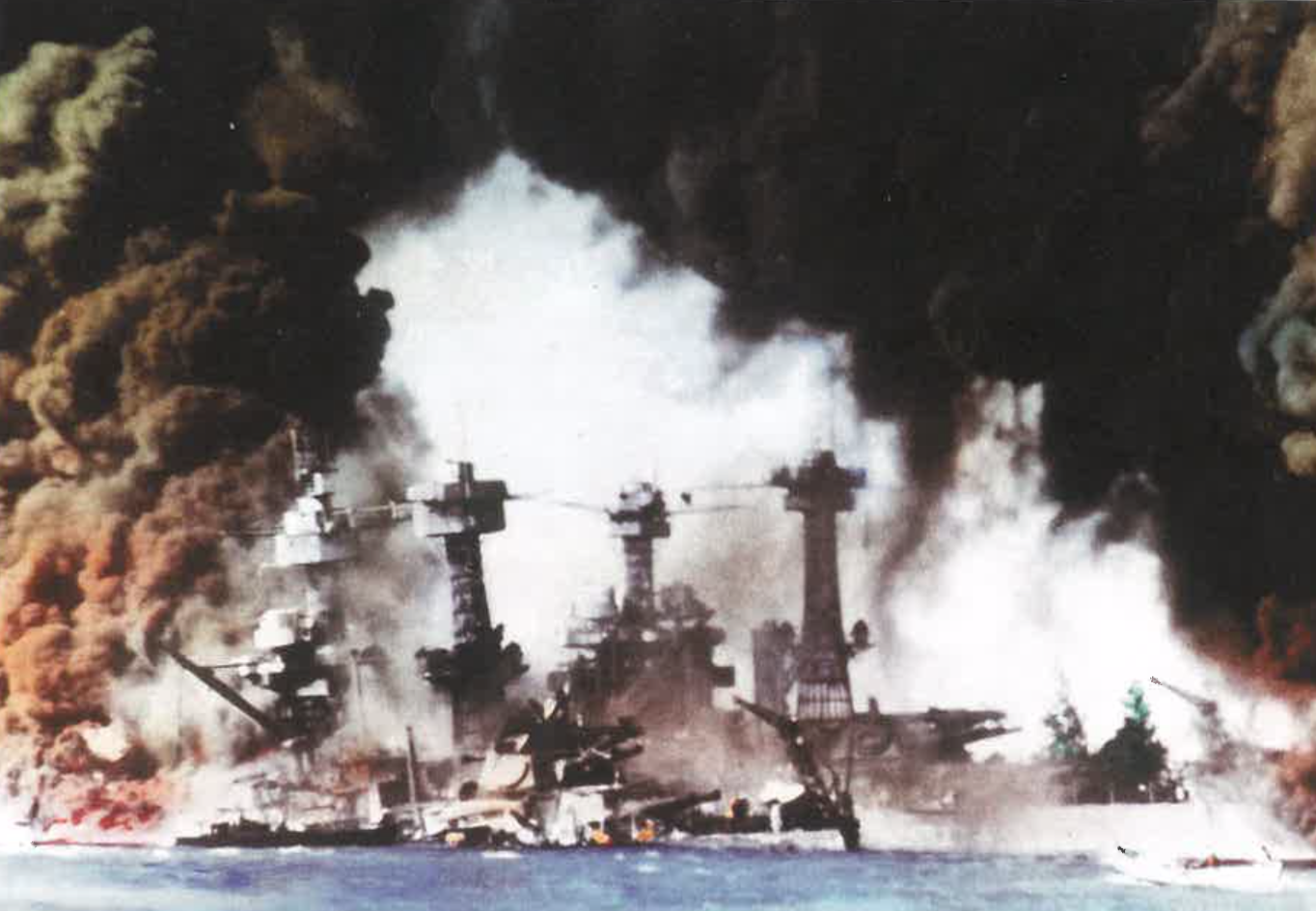 США были втянуты в войну, когда Япония без объявления войны нанесла 7 декабря 1941 года удар по базе американского флота в Перл-Харборе. Атака уничтожила большую часть Тихоокеанского флота США, а также существенные их воздушные силы, но авианосцы уцелели. Внезапность удара дала на время преимущество Японии, и она смогла занять как американские, так и британские заморские территории, включая Филиппины, Суматру, Сингапур и Борнео. Спустя несколько дня после атаки на Перл-Харбор Германия объявила войну США.