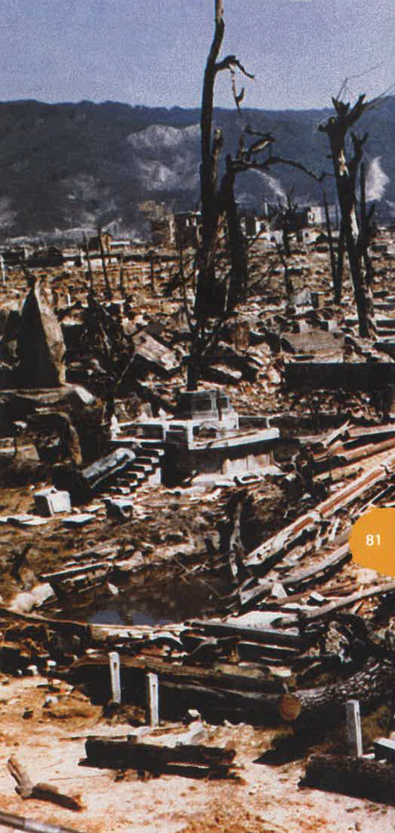 6 августа 1945 года атомная бомба была сброшена на Хиросиму, и три дня спустя на Нагасаки. Города понесли тяжелые разрушения, и более 130 тыс. человек были мгновенно убиты. Общее количество дальнейших смертей, безусловно являющихся последствиями атомной бомбардировки, в Хиросиме исчислялось 80 тыс., а через четыре года — 200 тыс. Япония заявила о капитуляции. Перемирие было подписано 2 сентября 1945 года, и на этом Вторая Мировая война завершилась.
