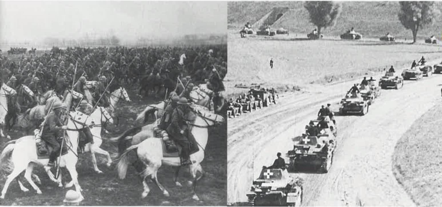 Германский "блицкриг" — "молниеносная война" — преуспел против Польши. Германские ВВС уничтожали польские коммуникации и транспортные пути. Танковые клинья пробивали польские позиции, и поляки оказывались в окружении и лишались целых подразделений. Оставшееся сопротивление подавляла германская пехота.