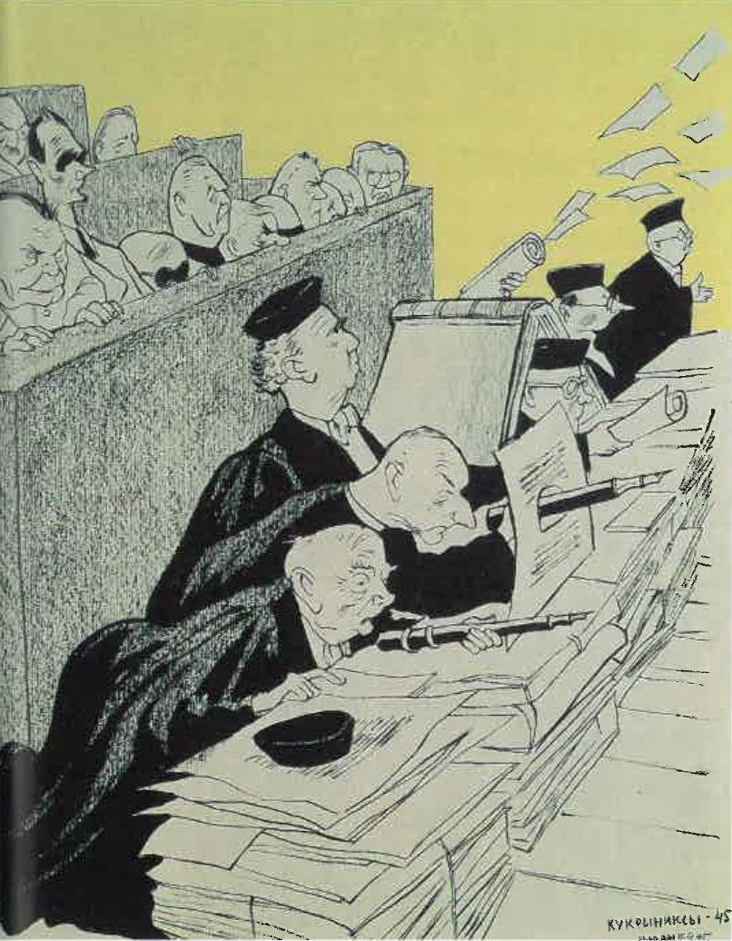 После завершения войны во многих европейских странах прошли судебные процессы над виновниками войны и военными преступниками. В Германии оккупировавшие ее страны проводили судебные процессы при участии немецкого народа, и многие политики времен войны понесли наказание. Крупнейший из этих процессов, против лидеров Германии, начался осенью 1945 в Нюрнберге. Нюрнберг был выбран местом для суда из-за его роли в нацистском прошлом; здесь во времена гитлеровской Германии проходили съезды нацисткой партии. Около двадцати человек нацистской верхушки обвинялись в преступлениях против мира и человечества. Половина из них была приговорена к смерти, включая, например, рейхсмаршала Германа Геринга (1893-1946) и министра внутренних дел Иоахима фон Риббентропа (1893-1946); большая часть остальных получила длительные тюремные сроки.
