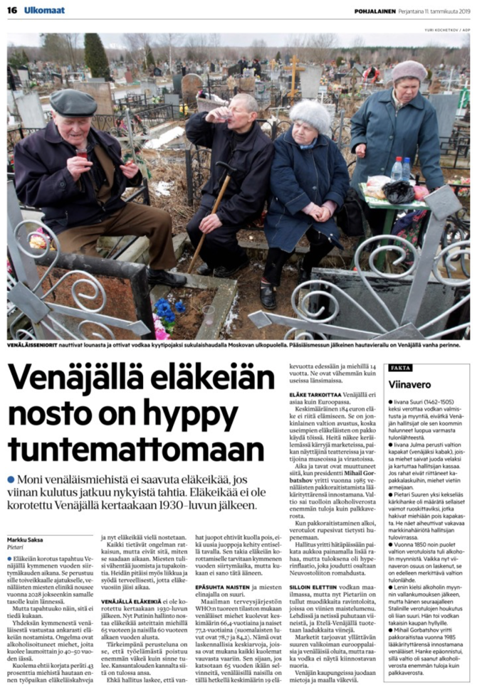 Сегодня в рубрике "За рубежом" нашей финской региональной газеты рассказывают о повышении пенсионного возраста в России, но с несколько однобокой точки зрения, я бы сказал.