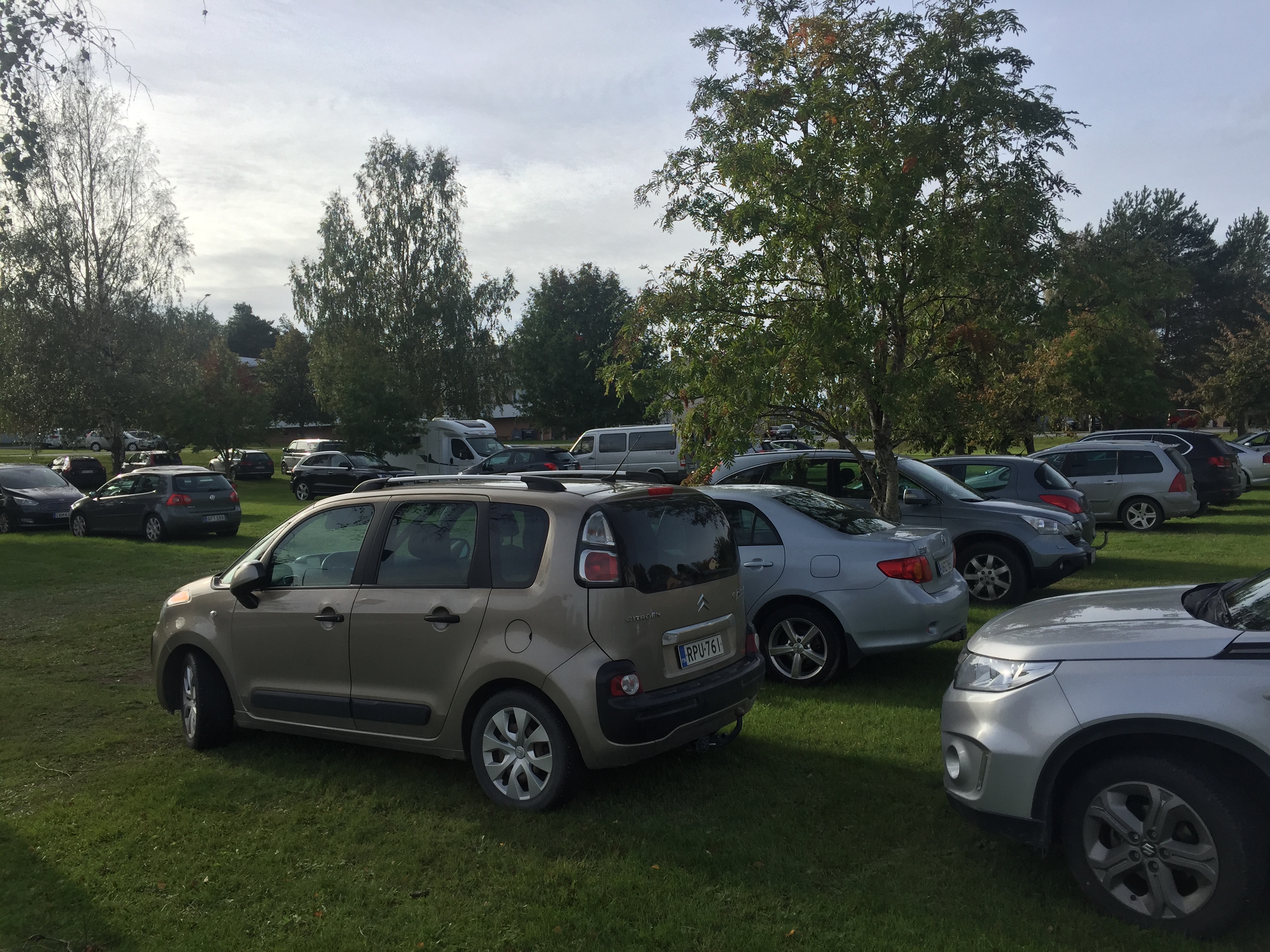 40. ФИННЫ ПАРКУЮТСЯ НА ГАЗОНАХ!! Это съехались на ярмарку в Кристинестад (нас. 7 тыс.) со всей округи