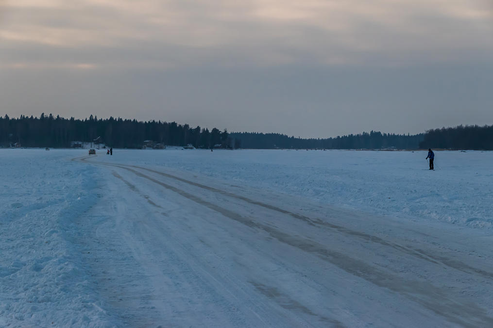 Одна более–менее серьезная, хоть и неофициальная, ледовая дорога все же есть — из лодочной гавани района Йербю на остров Граншер (Еловый), где действует ресторан "Салун Янне". Ресторан же эту дорогу и чистит и поддерживает. (Летом в ресторан можно попасть на их теплоходике "Тийра", который ходит из гостевой гавани центра города, а вот что они делают весной и осенью — понятия не имею.)