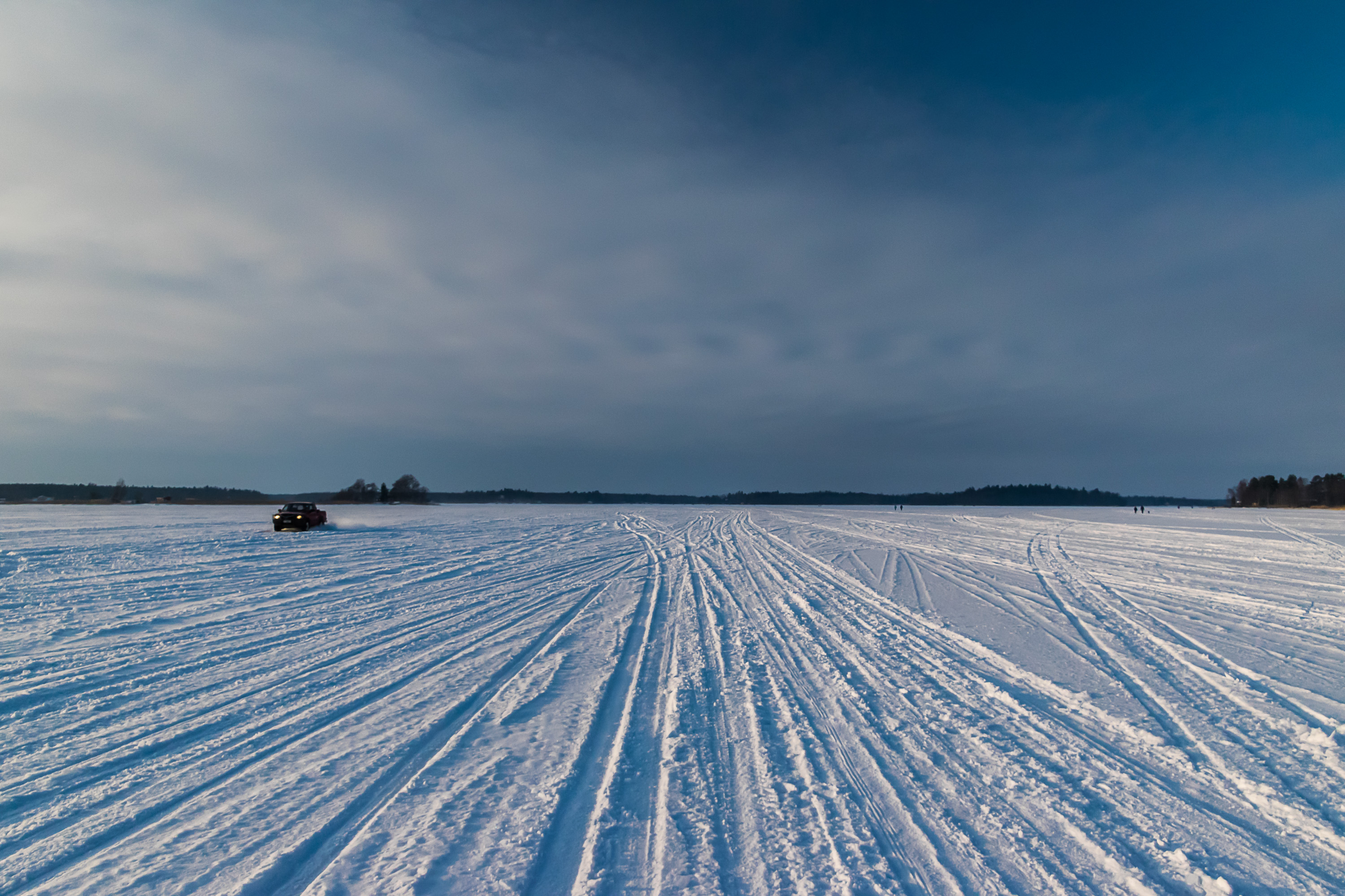 Но, как несложно заметить, люди ездят не только по этой дороге, а и просто гоняют кто как. Не только на машинах, конечно, но и на снегоходах, и на лыжах, и пешком.