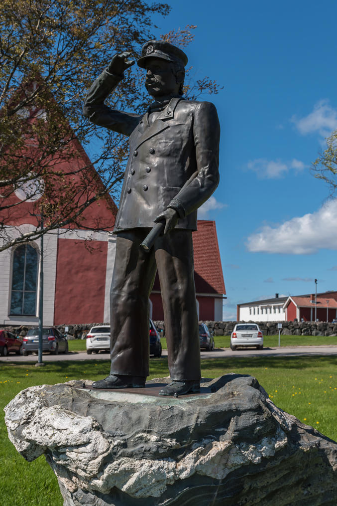 32. Этот бравый капитан, статуя которому стоит у церкви — Карл Олоф Бекстрём, местный лоцман в 1887-1919 годах.