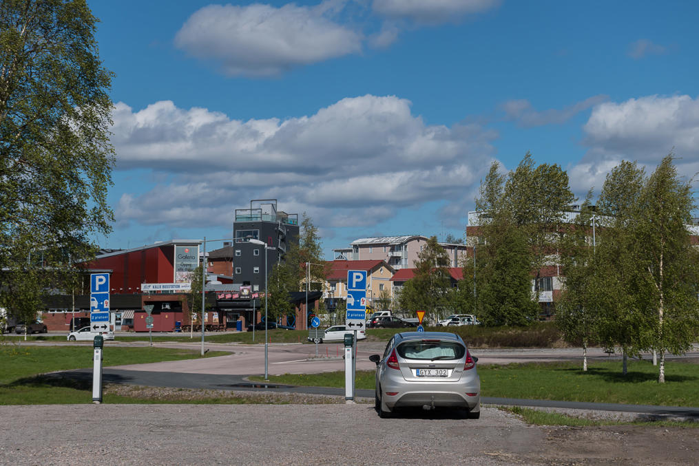 2. Я выехал из дома, из финского города Вааса, около пяти утра, и 500 км до Каликса, огибая Ботнический залив (мимо городов Коккола, Оулу, Кеми, Торнио, Хапаранда), проехал за примерно 6.5 часов почти без остановок, кроме как для дозаправки и на чуточку размять ноги. Каликс, честно говоря, не слишком интересный город, но я люблю изучать непримечательные мелкие финские и скандинавские городки, да и название "Каликс" мне всегда нравилось, так что город я решил осмотреть. Оставил машину на парковке у парка напротив центра города, где было несколько мест для электромобилей, ибо это ж вся из себя продвинутая Швеция. (У меня не электромобиль, если что, и машина на фото не моя.)