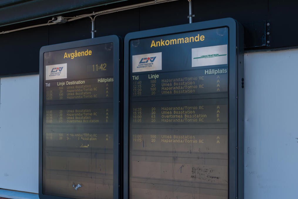 28. Автостанция. Железнодорожная станция тоже где-то есть, но пассажирских поездов между Лулео (точнее, Буденом) и Хапарандой уже давно не ходит. (2024: пассажирское движение по новой ж/д на Хапаранду через Каликс пущено в 2021, построен новый вокзал)
