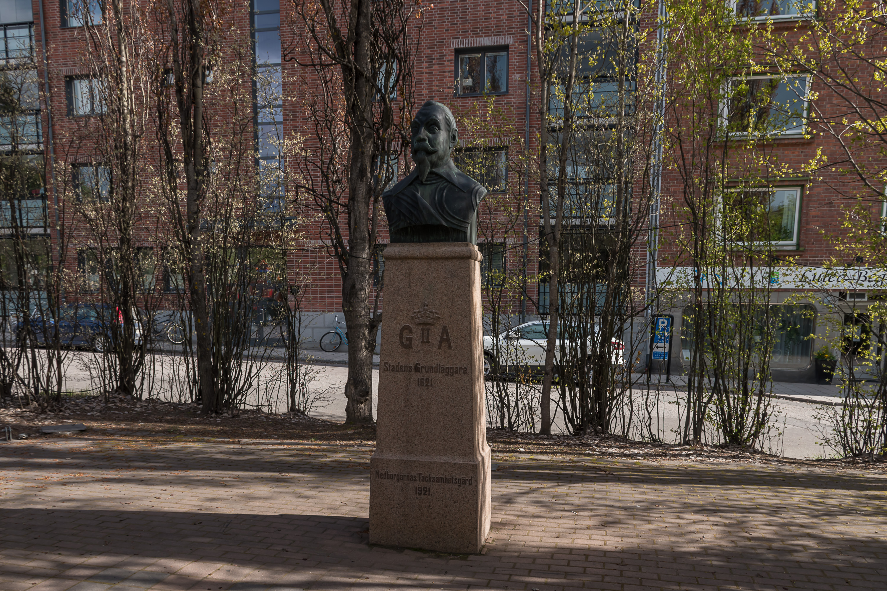 60. Маленький памятник королю Густаву-Адольфу II, основателю города. У него здесь какой-то очень всратый вид.