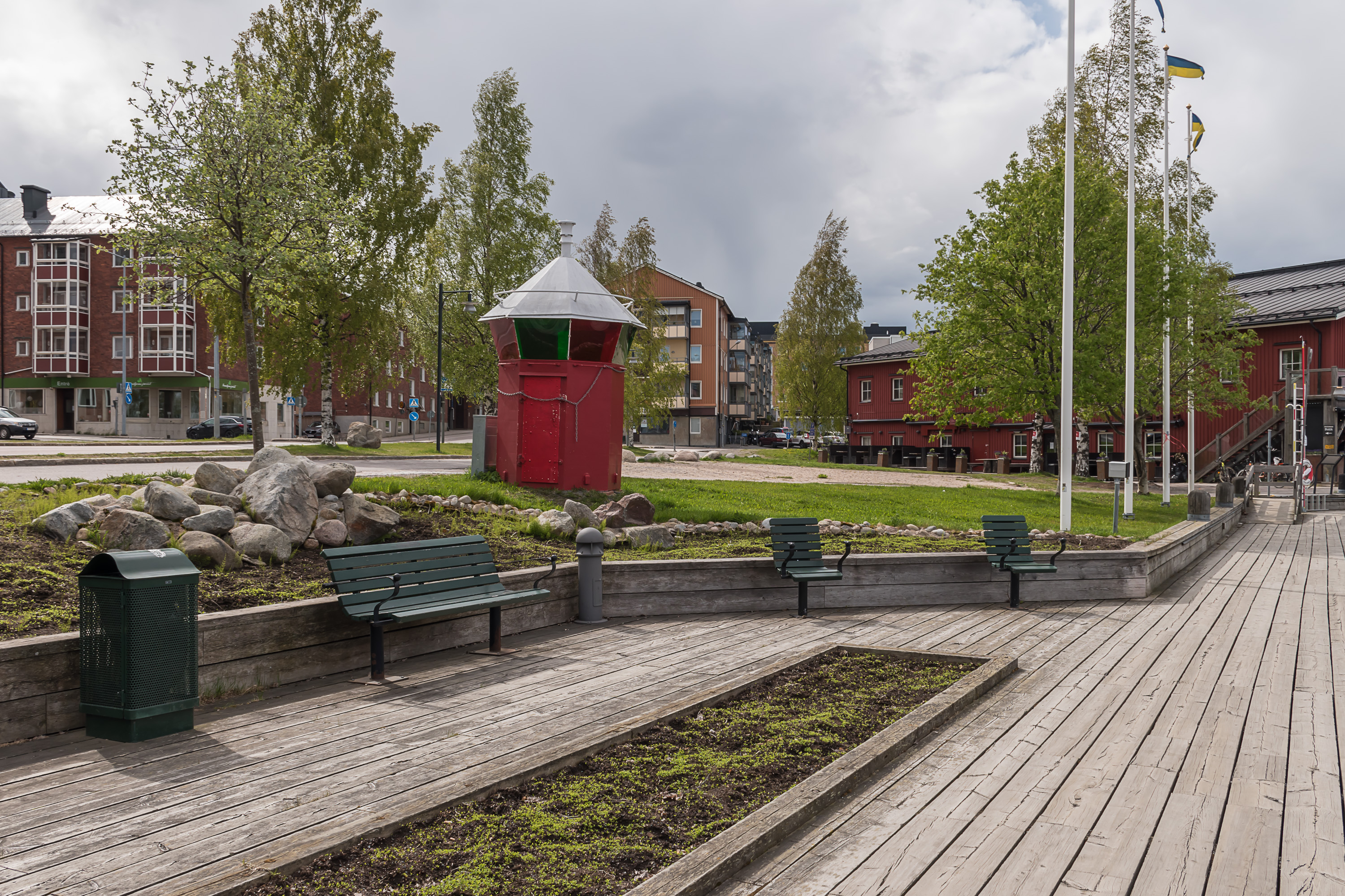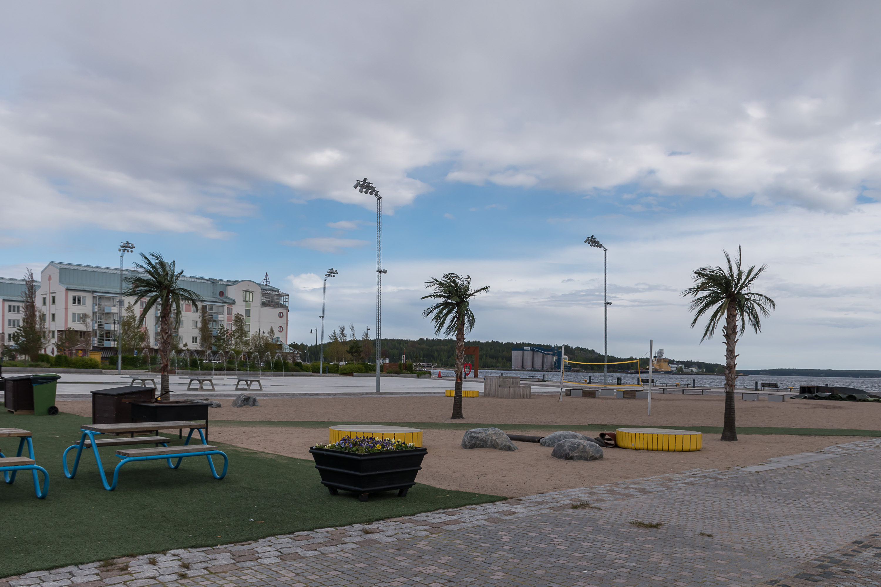 32. Территория старой гавани, ныне место отдыха. Пальмы! Кто сказал, что Лулео не тропический город? Конечно, на самом деле в столь северном городе зимой стоит ужасный дубак (и темнота!). Температурный рекорд — –42.3 ºC, а средняя температура зимних месяцев –10 ºC (что, конечно, означает, что часто бывает и значительно холоднее среднего). Но это все же еще не Полярный круг, да и город стоит на берегу, в глубь материка морозы могут быть посильнее. Сейчас-то, конечно, летом все зелено и тепло, но на зиму пальмы точно придется выковырять и куда-нибудь убрать :)