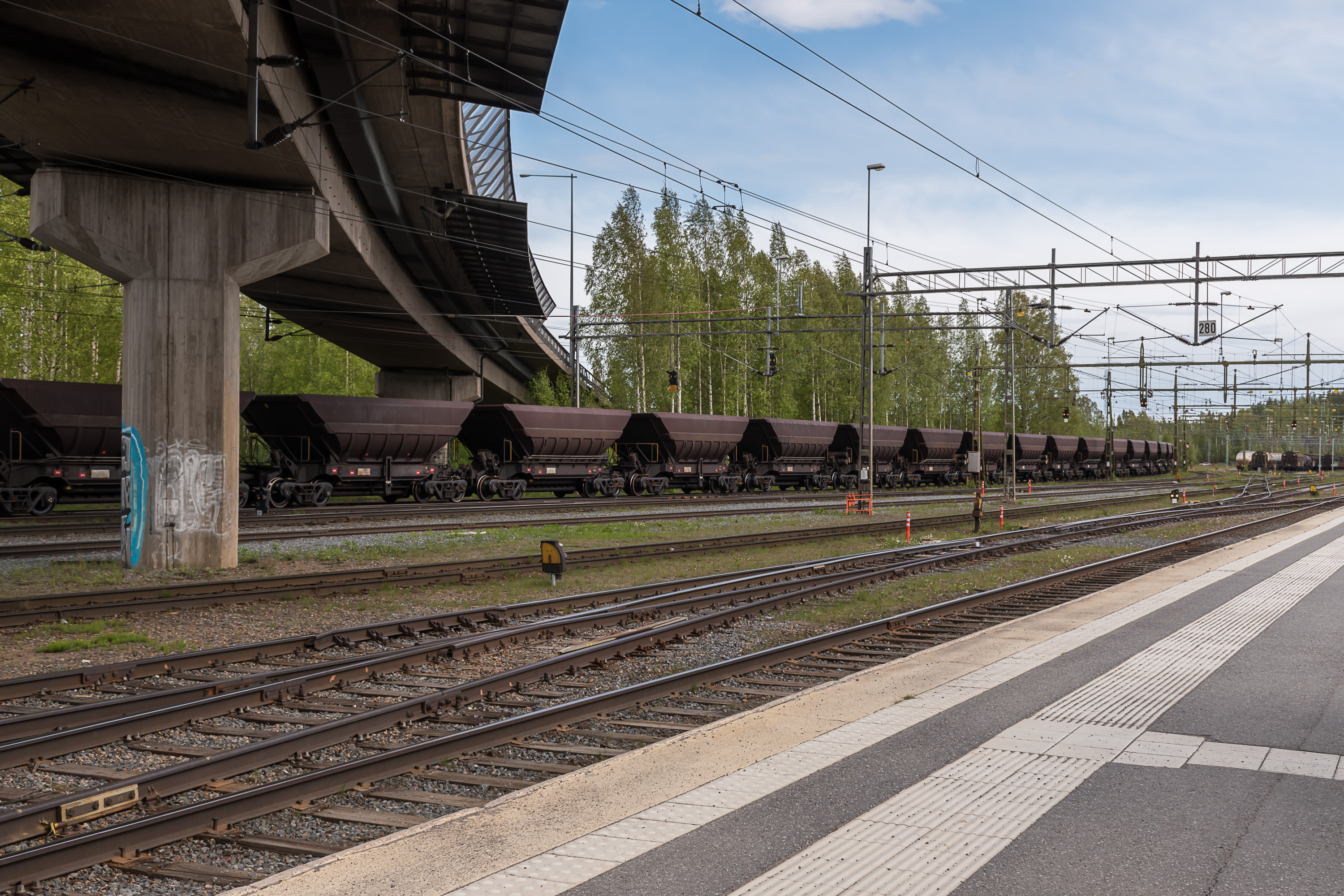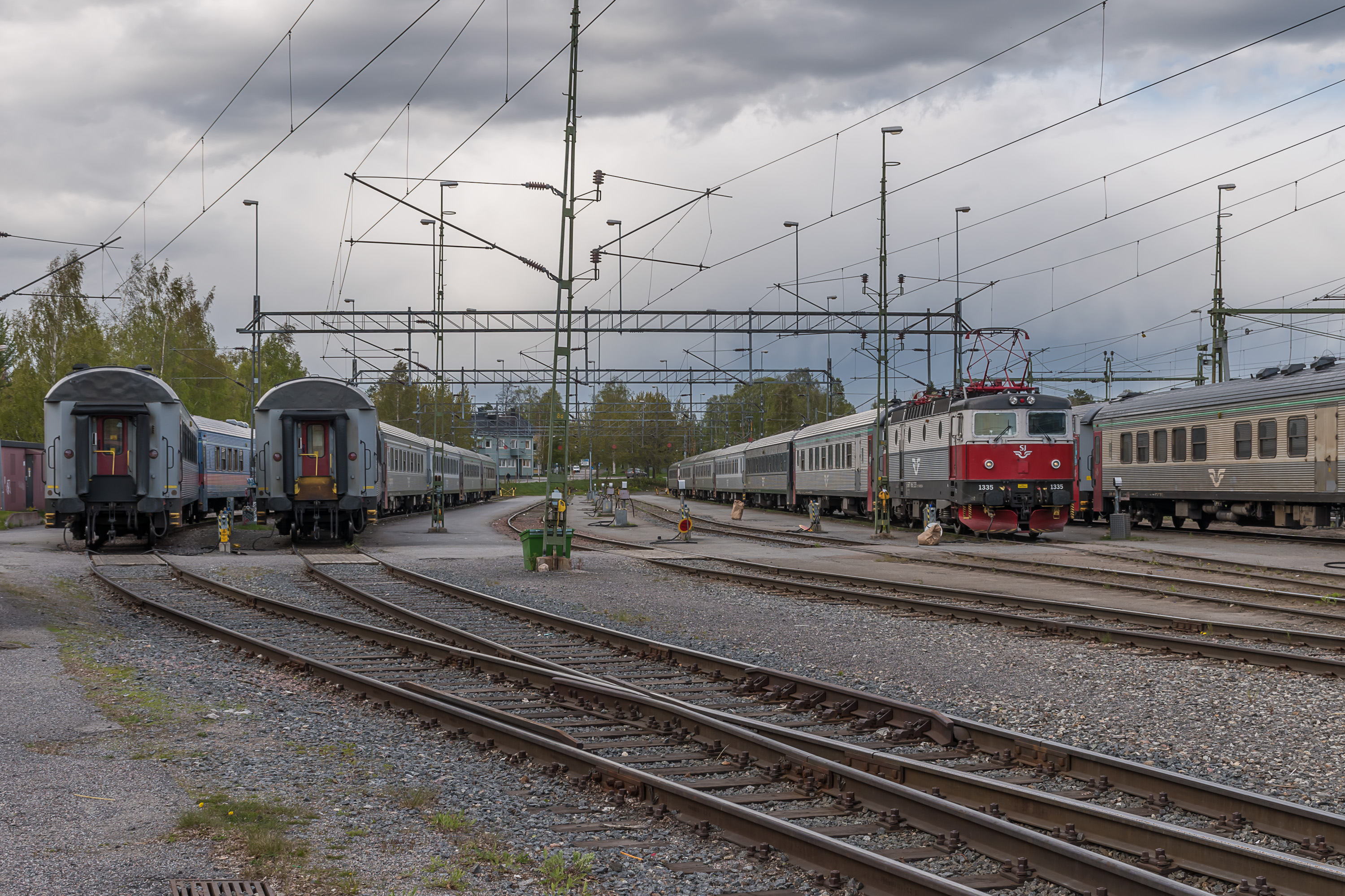 42. Станция Лулео также самая северная вдоль шведского побережья, где есть пассажирское движение. Выйдя на платформу, построенную в кривой, я как раз увидел подающийся к платформе спальный поезд на Стокгольм. До отправления было еще больше часа, так что посадка еще не началась.