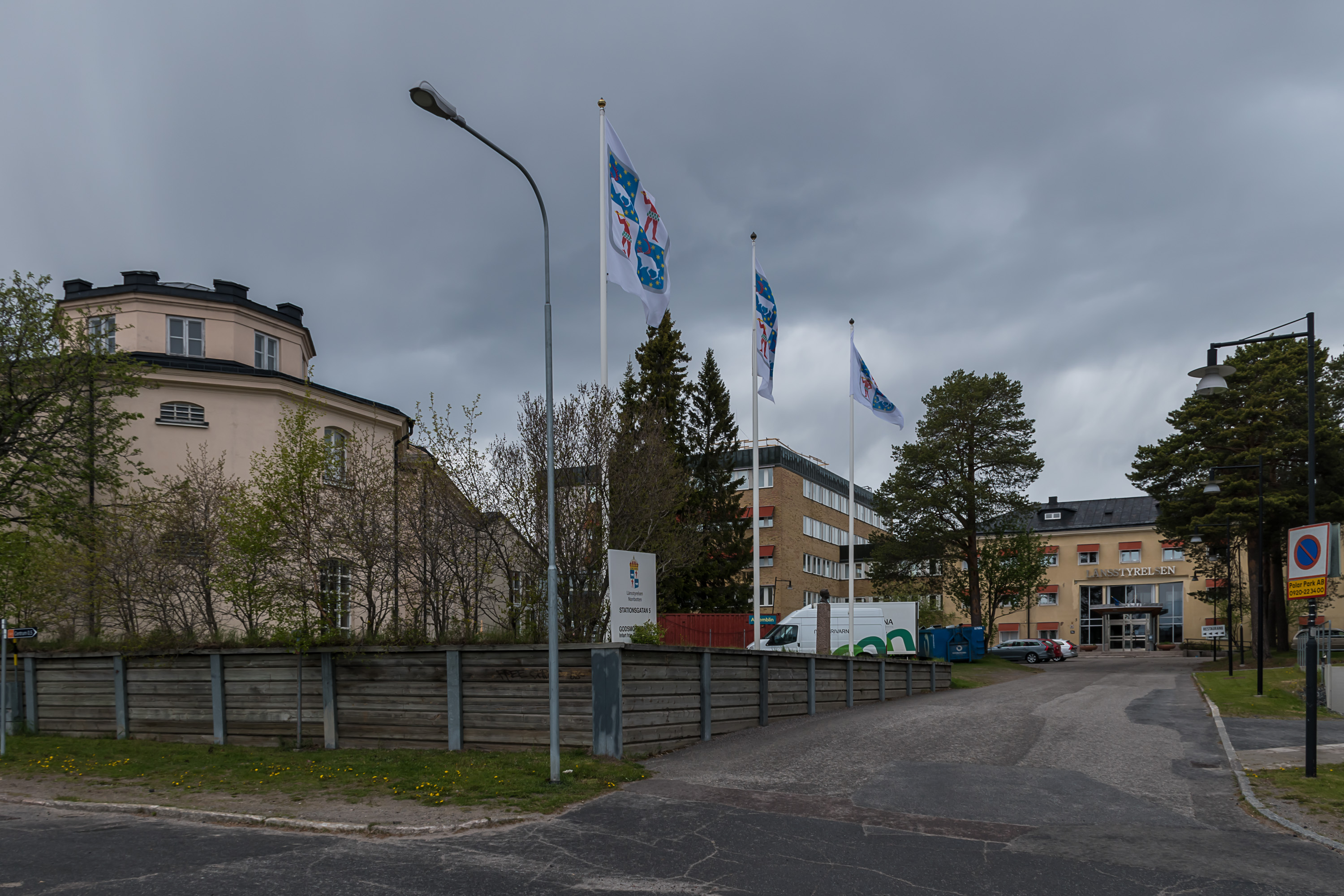 18. Здания губернской администрации (länstyrelsen). Видны флаги губернии Норрботтен; вот более четкая картинка из Википедии: