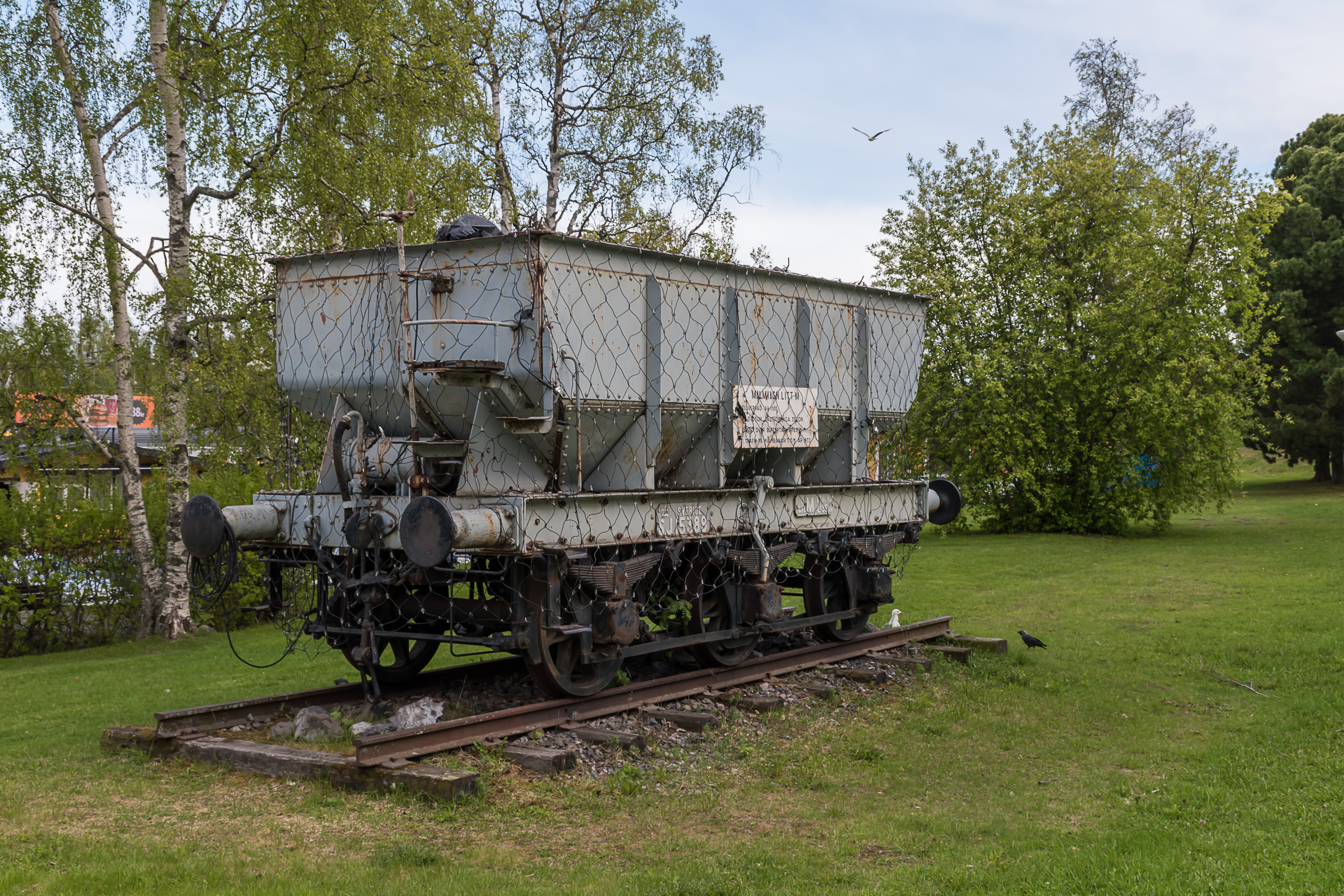 41. Хоть рудную гавань я и не увидел, но вот, по крайней мере, рудный состав. Эти характерные вагоны для руды возят по Рудной ж/д специально спроектированные для нее мощные электровозы IORE; такие поезда-"вертушки" постоянно можно увидеть в Лулео, Елливаре, Кируне и Нарвике.
