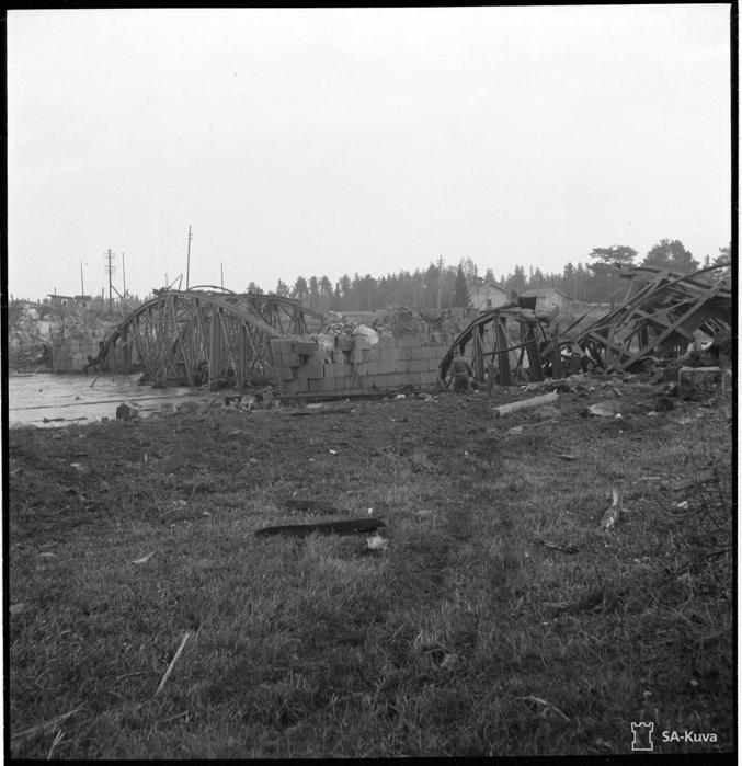33. Взорванный железнодорожный мост в Хаукипудасе под Оулу — одно из мест, где железная дорога в Лапландию была перерезана