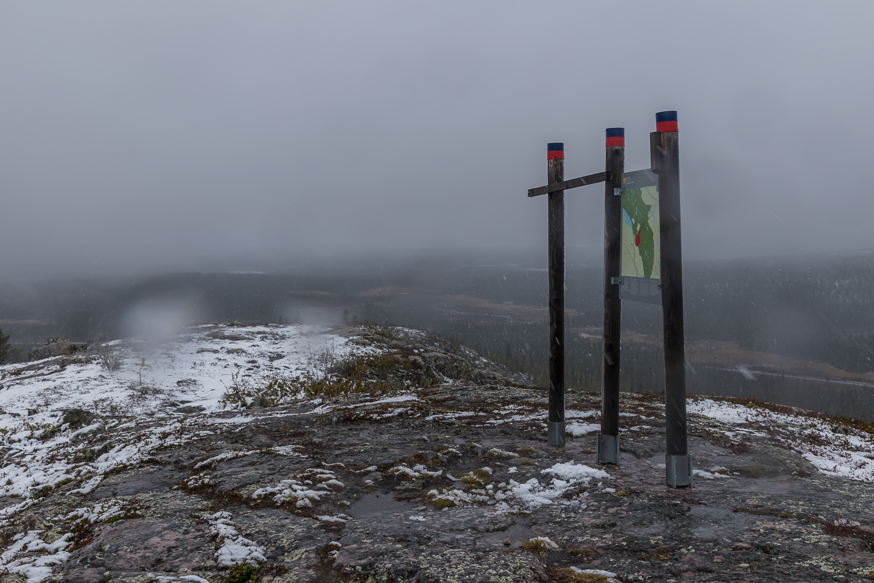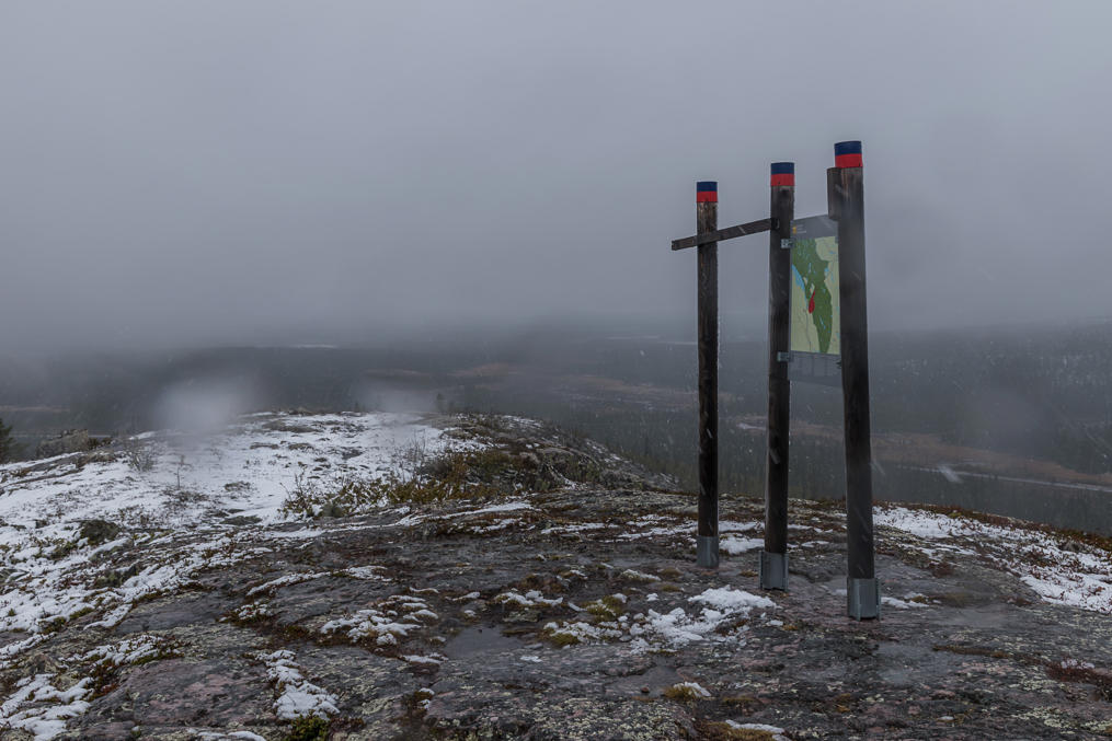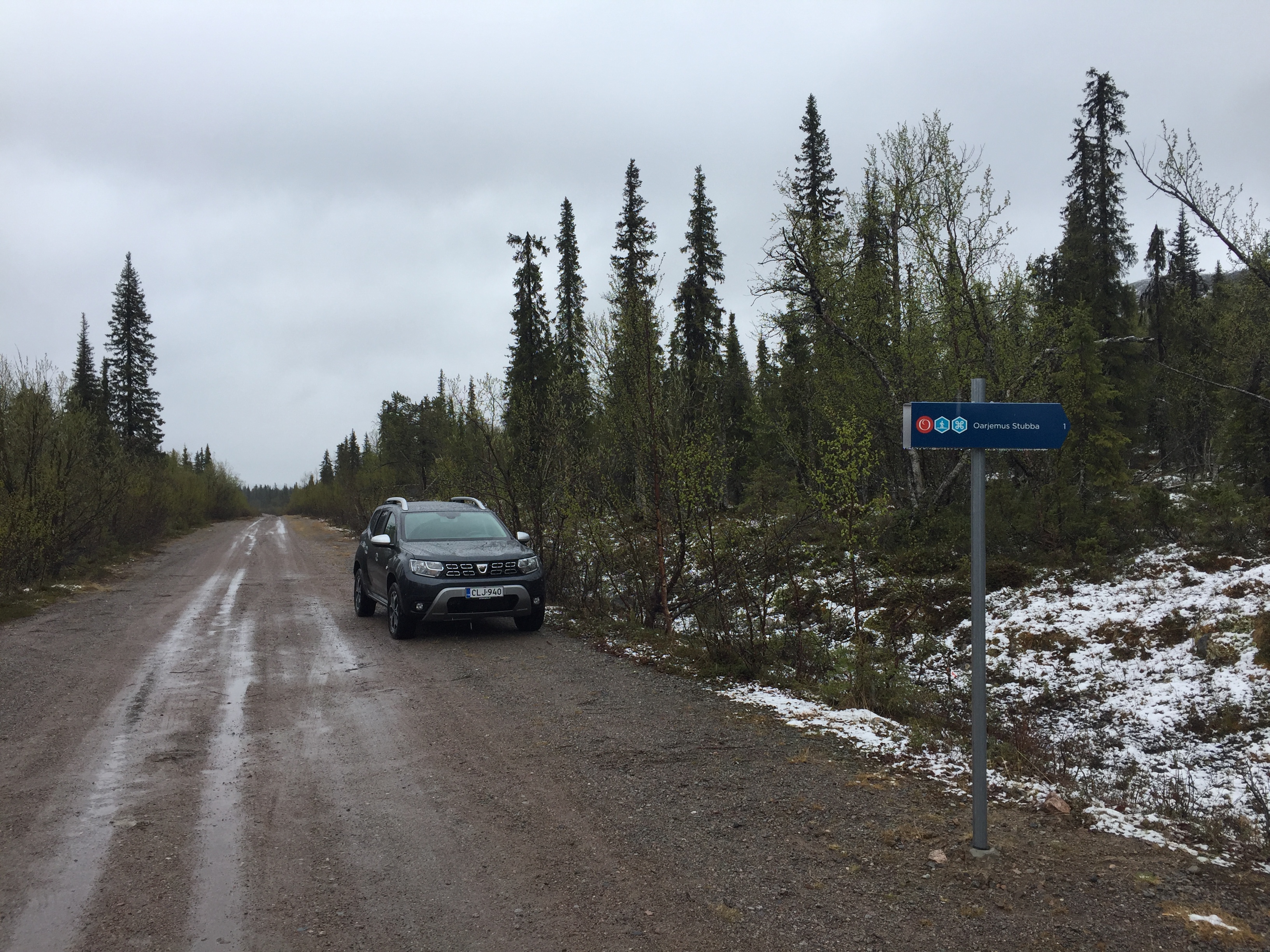1. Тропа на сопку Оарьемус-Стубба (Oarjemus Stubbá) начинается от гравийной дороги, в 200 м от поворота с трассы E45, в паре десятков километров к югу от Елливаре. Знак на E45 маленький и на разрешенной скорости 100 км/ч его едва можно вовремя заметить.