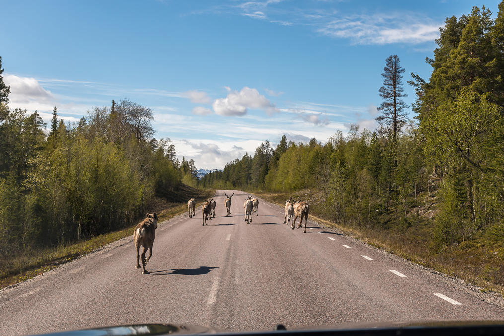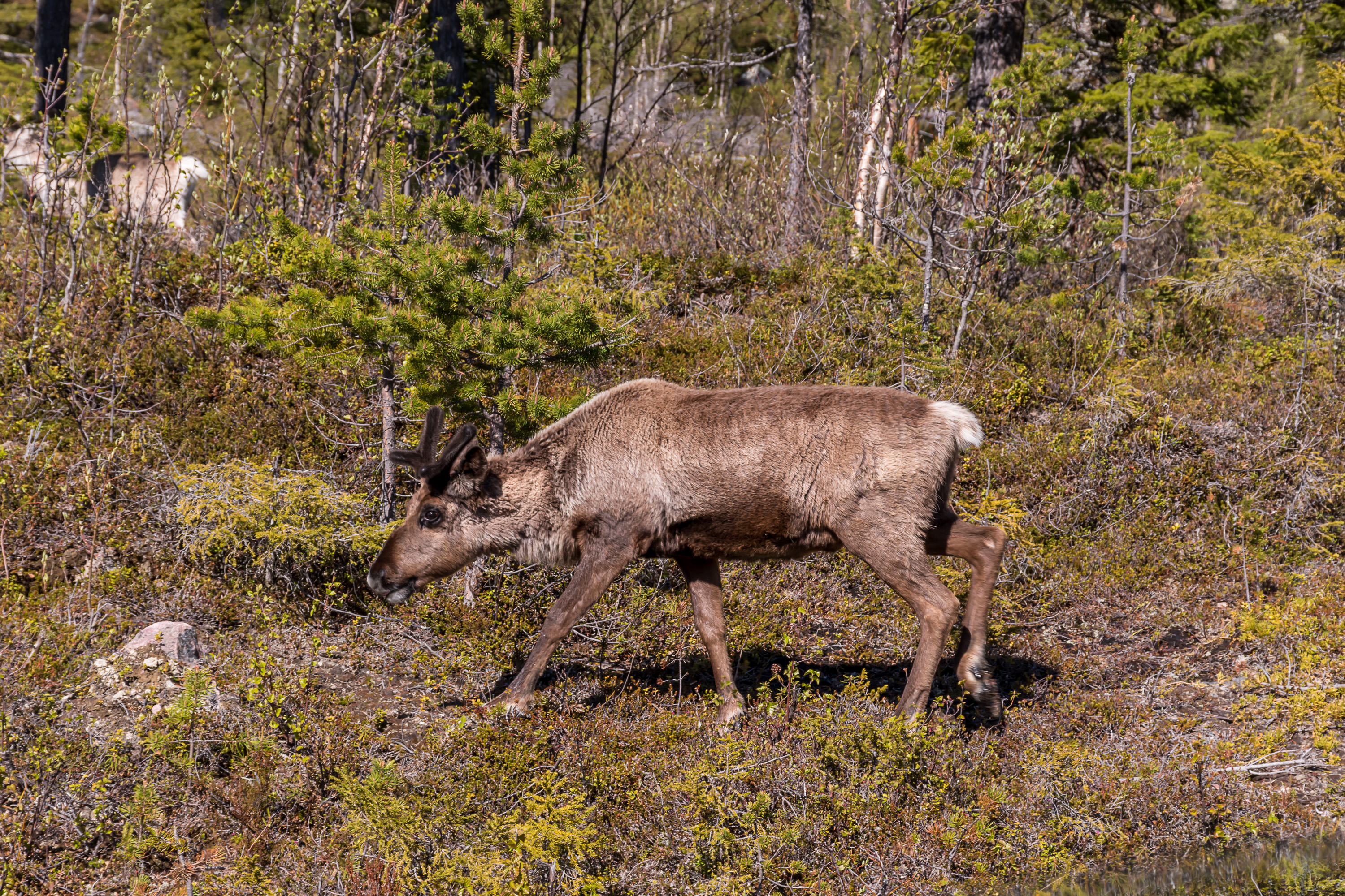 12. Как и все горные районы Северной Швеции, верхняя часть долины Стура-Лулеэльвен используется саамским народом для оленеводства. Олени перемещаются вверх в горы на лето, и вниз в леса на зиму. По-моему, правда, это не 100% правило; когда путешествуешь по северу, все равно олени (по крайней мере одиночные — заблудившиеся?) встречаются хотя бы изредка, но почти везде.
