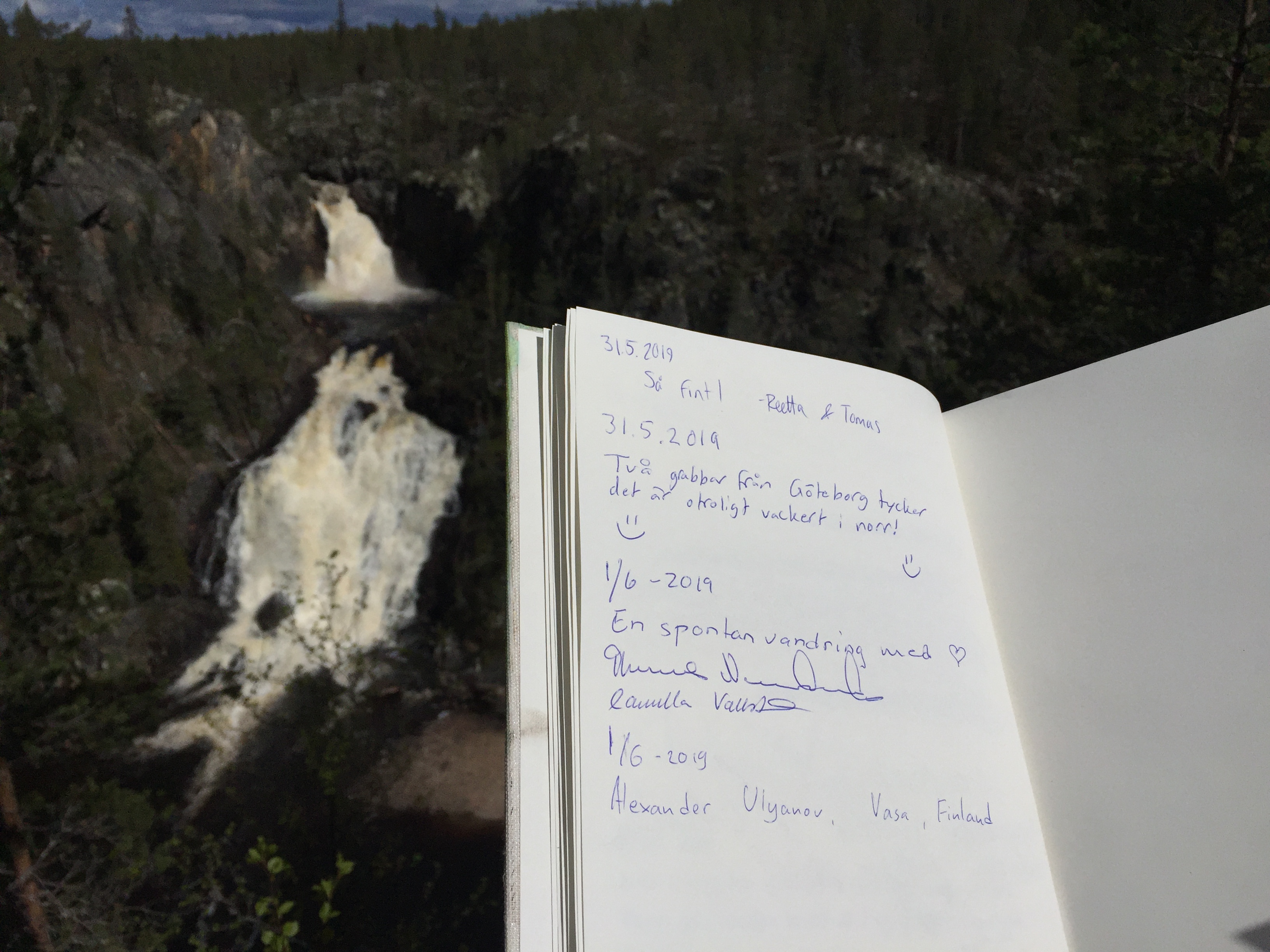Изначально я собирался пойти в Муддус на два дня с ночевкой, и взял с собой в поездку палатку и прочее, но первые два дня выдались настолько насыщенными, что сил на что-то масштабное у меня уже не было. Так что я решил просто дойти до главной достопримечательности парка да обратно. А именно, до водопада Муддусфаллет (Muddusfallet, луле-саамск. Muddusagahtjaldak, Муддусагахтьялдак). Ага, снова водопад.