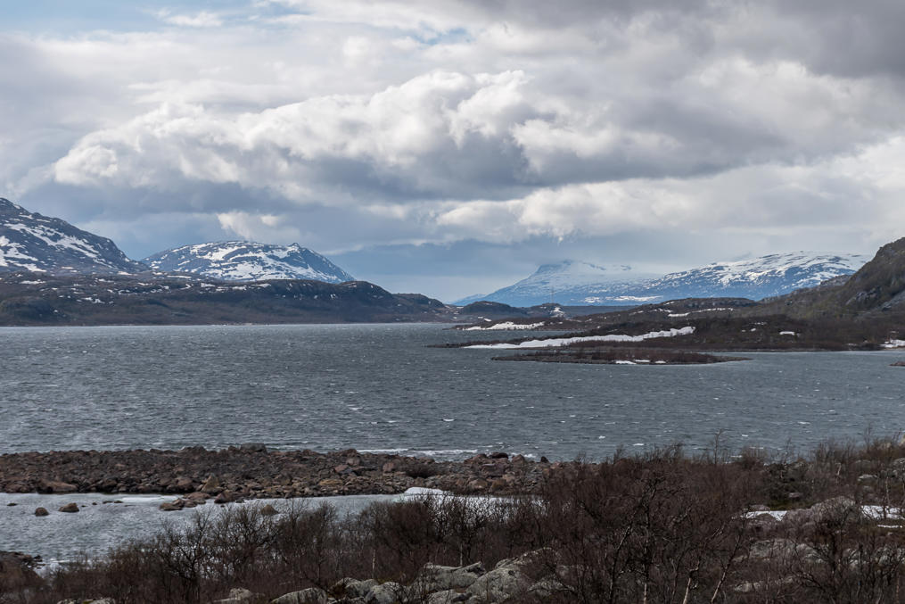 16. Хотя это уже верховья Стура-Лулеэльвен, сама она тоже здесь выглядит внушительно, в основном более километра шириной. Но скорее всего тут она искусственно подпружена плотинами ГЭС ниже по течению, так что это скорее длинное водохранилище.