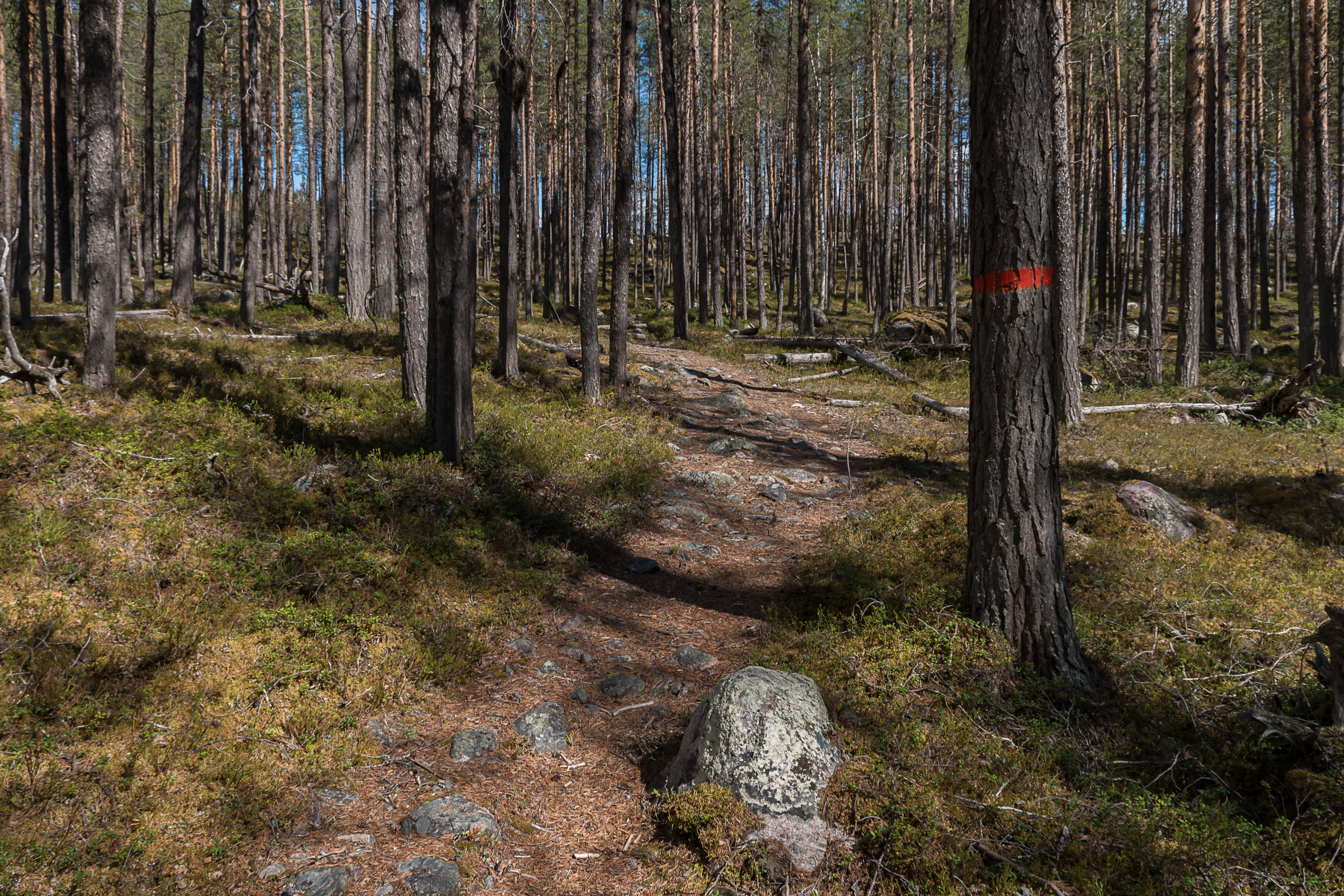 41. На следующий день я отправился в основную часть национального парка Муддус (Muddus, луле-саамск. Muttos, Муттос). Помимо пары одиноких сопок, таких как Оарьемус-Стубба, этот национальный парк состоит в основном из тайги и болот. Мне он показался весьма походим на Оуланку — один из самых известных национальных парков Финляндии, тоже уже на севере, но еще не в горах.