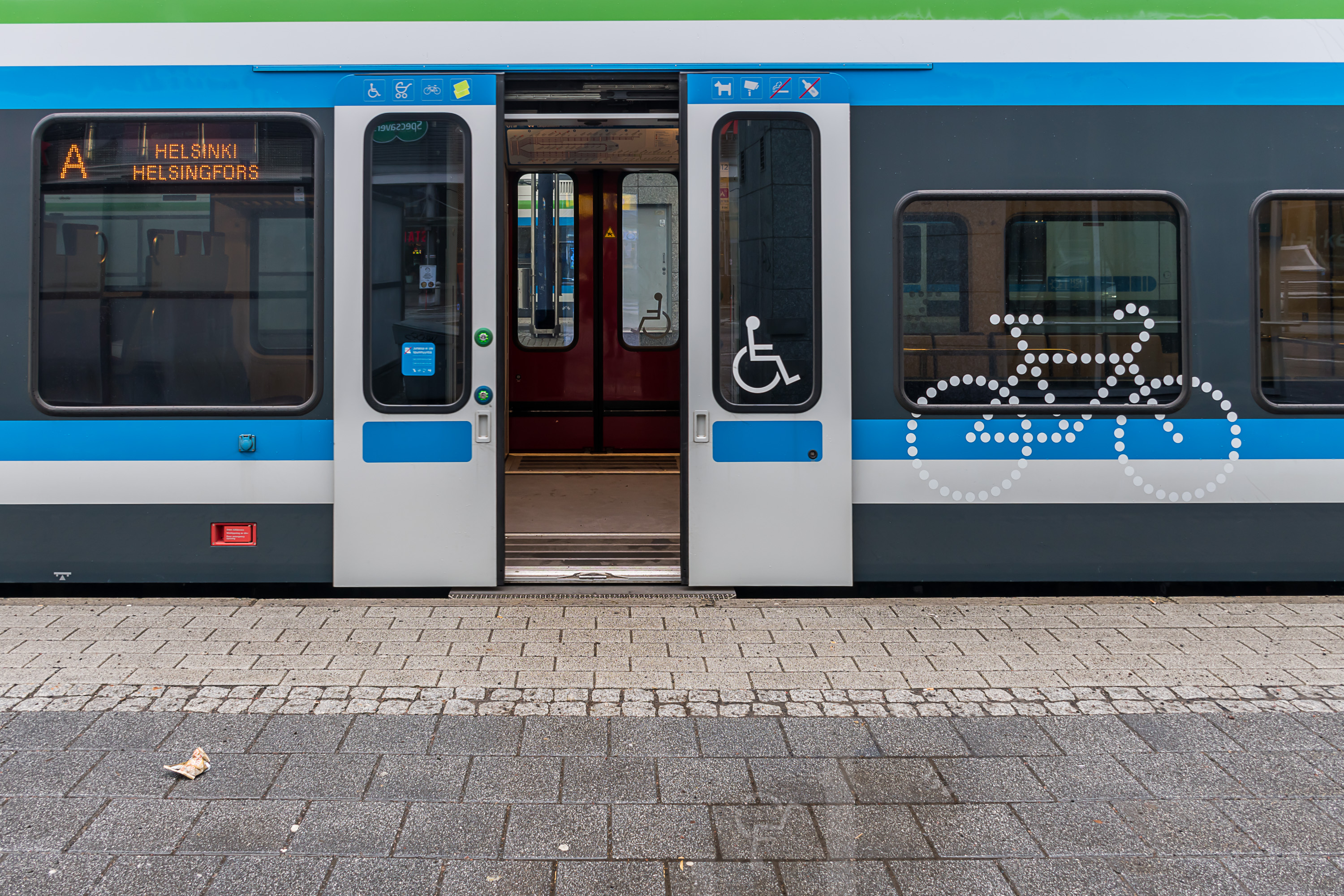 К безбарьерности и доступной среде система транспорта Хельсинки относится очень серьезно. На данный момент весь подвижной состав всего транспорта (кроме региональных автобусов и старых региональных электричек на второстепенных маршрутах) полностью или частично низкопольный и доступен для инвалидных колясок (а также детских колясок и в некоторых случаях велосипедов). У электричек и метропоездов есть специальные двери в середине, у которых по нажатию кнопки выдвигается специальная "ступенька", закрывающая проем между поездом и платформой. На автобусах и трамваях при необходимости может помочь водитель. На всех (насколько мне известно) станциях метро и электричек, где на платформу нужно попадать через лестницы или эскалаторы, есть также и лифты.