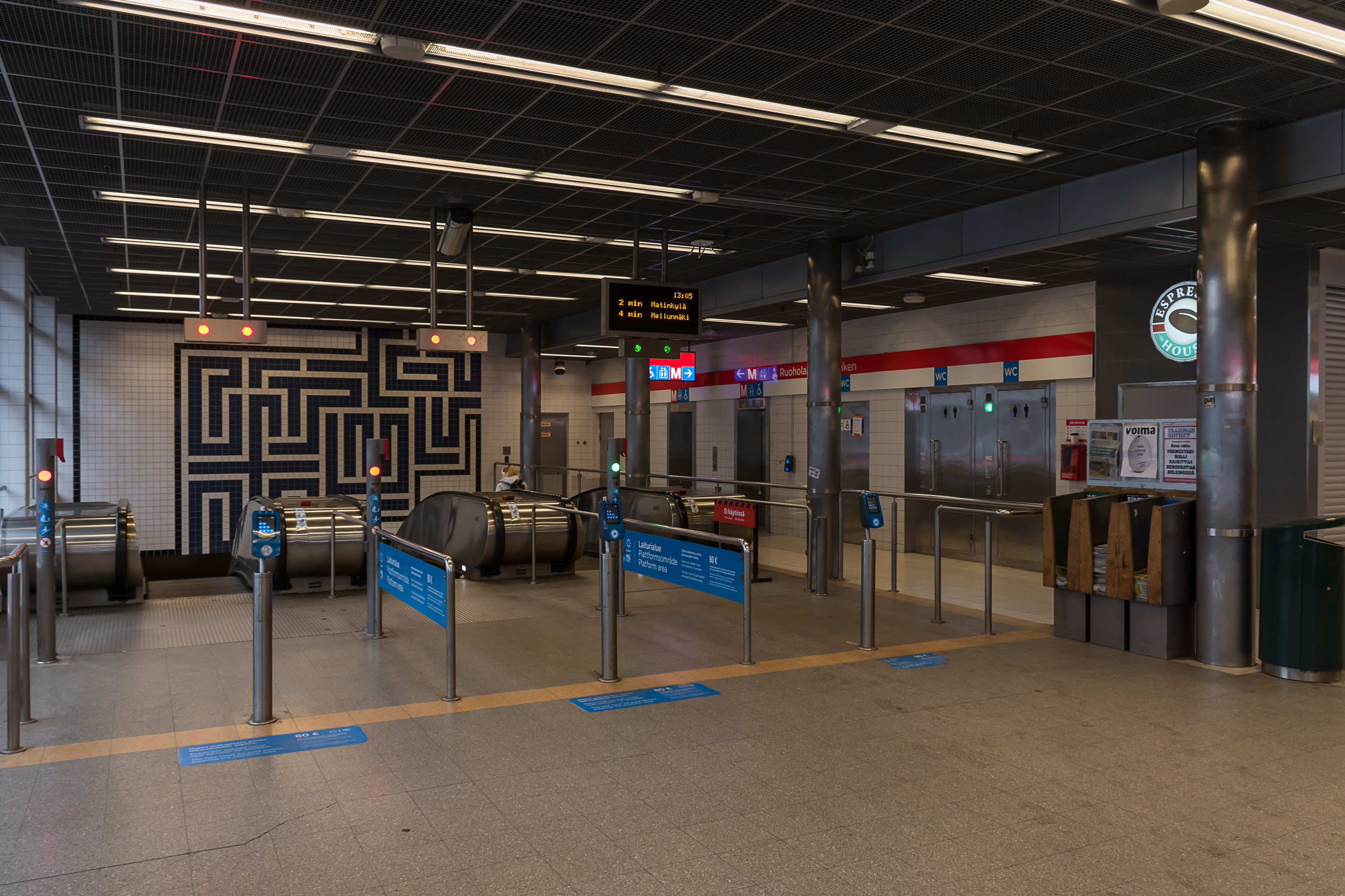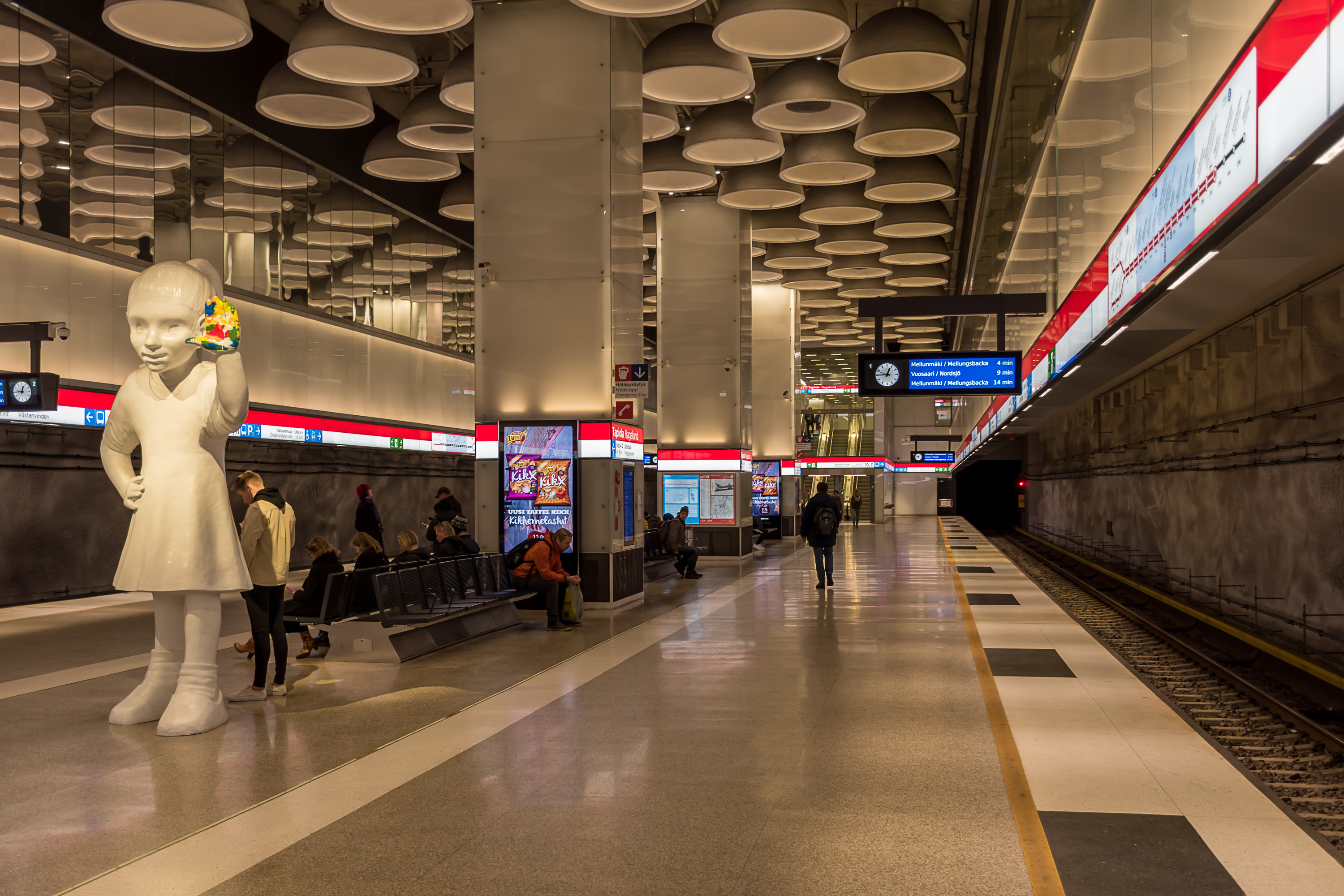 Изначально метро строилось только на территории собственно города Хельсинки (запущено в 1982, после этого было несколько продлений), и на западе заканчивалось на станции Руохолахти, до которой можно минут за двадцать пешком дойти из исторического центра Хельсинки. Проект продления на запад в город Эспоо (Западное метро, Länsimetro) строился в 2009-2017 годах, и после существенных задержек таки открылось 8 новых станции и 14 км (двойных) туннелей. Вторая очередь расширения, до Кивенлахти, с еще 5 станциями, 7 км туннелей и новым депо еще строится и должна открыться в 2023 году. Всего на данный момент работает 25 станций, а длина линии — 35 км.