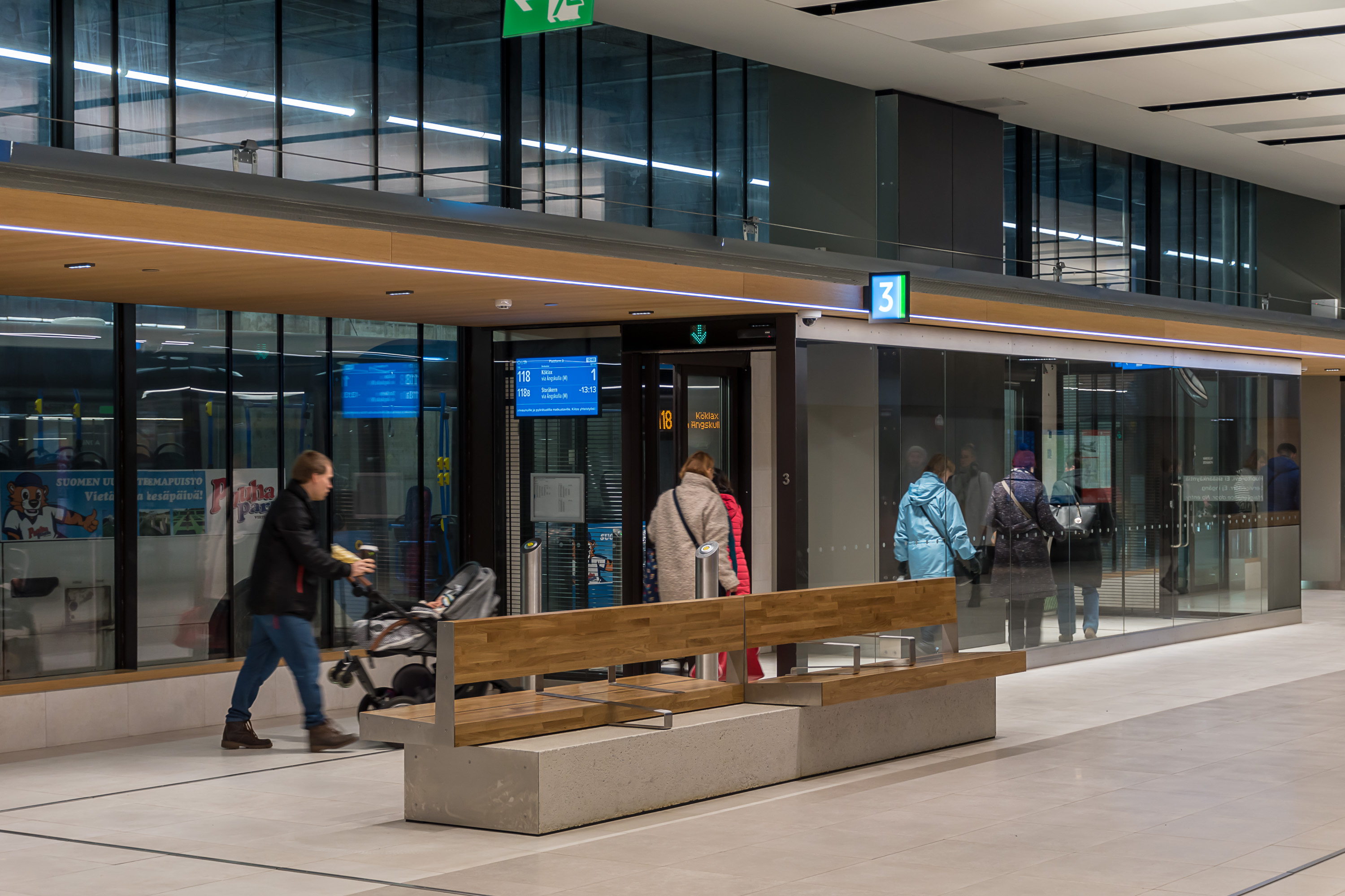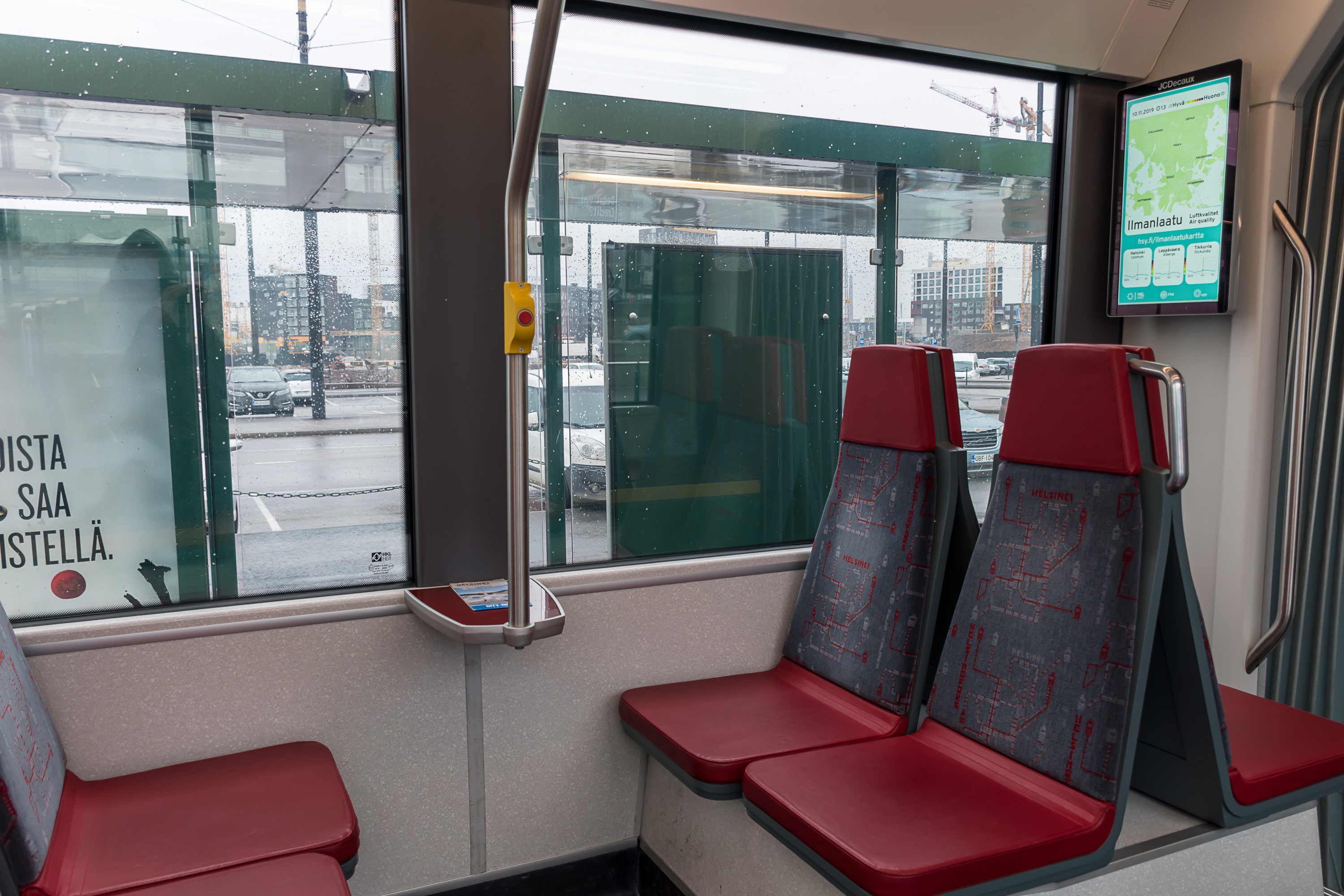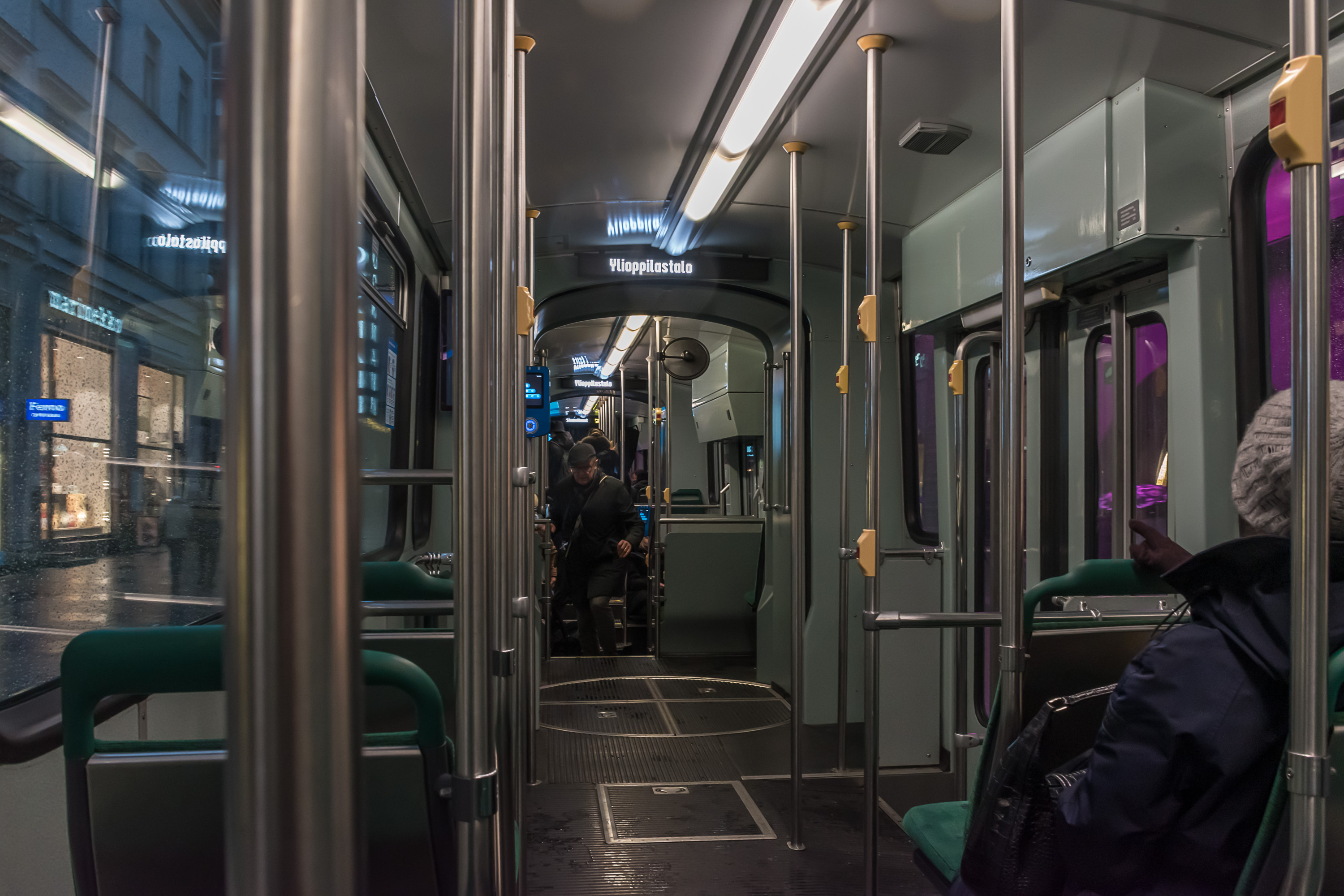 Во все автобусы, опять же, кроме магистральных, следует заходить через переднюю дверь, и показать в этот момент водителю билет (бумажный или в приложении) или приложить карточку HSL к валидатору. Водители также продают билеты за наличные. Автобусы — единственный вид траспорта, где сохраняется продажа билетов на борту, хотя они стоят существенно дороже обычных. Средняя и задняя двери предназначены для выхода. Через среднюю также можно заходить с детской коляской; проезд с коляской бесплатен. Все используемые автобусы частично низкопольные, и средняя часть используется для детских и инвалидных колясок (с последними может помочь водитель при необходимости). Все автобусы, кроме "районных маршрутов", используют машины большой вместимости (полноразмерные, но без "гармошек").