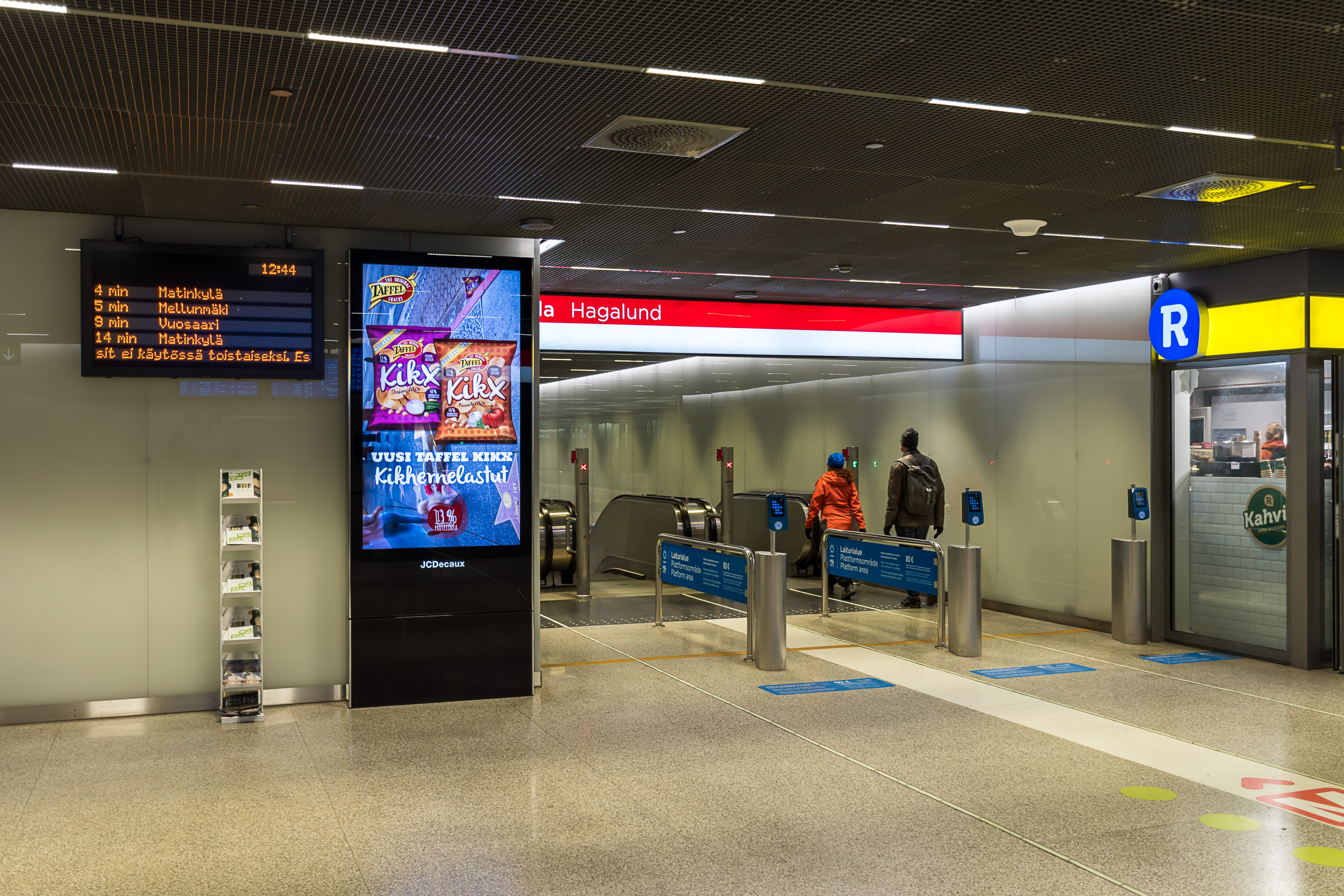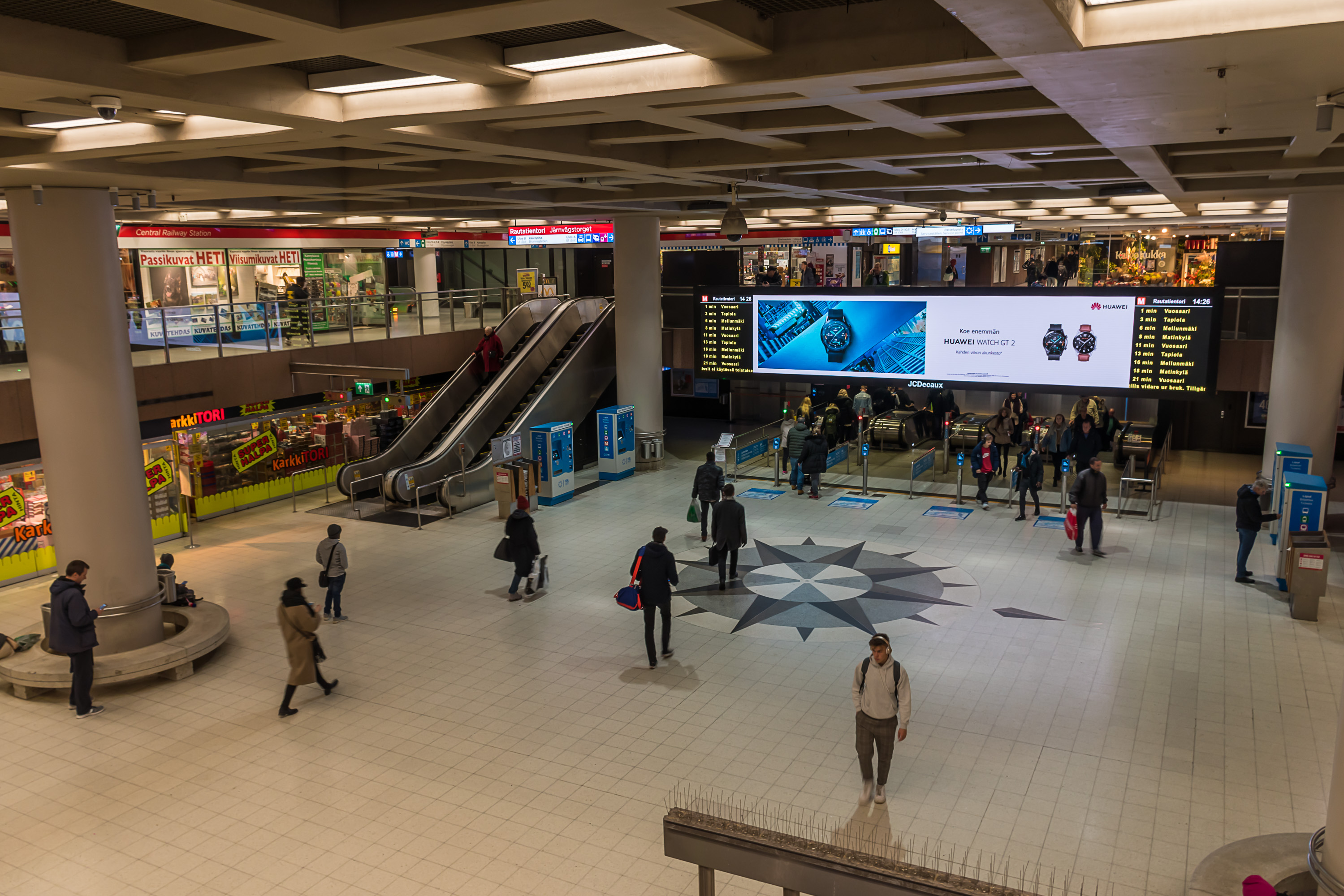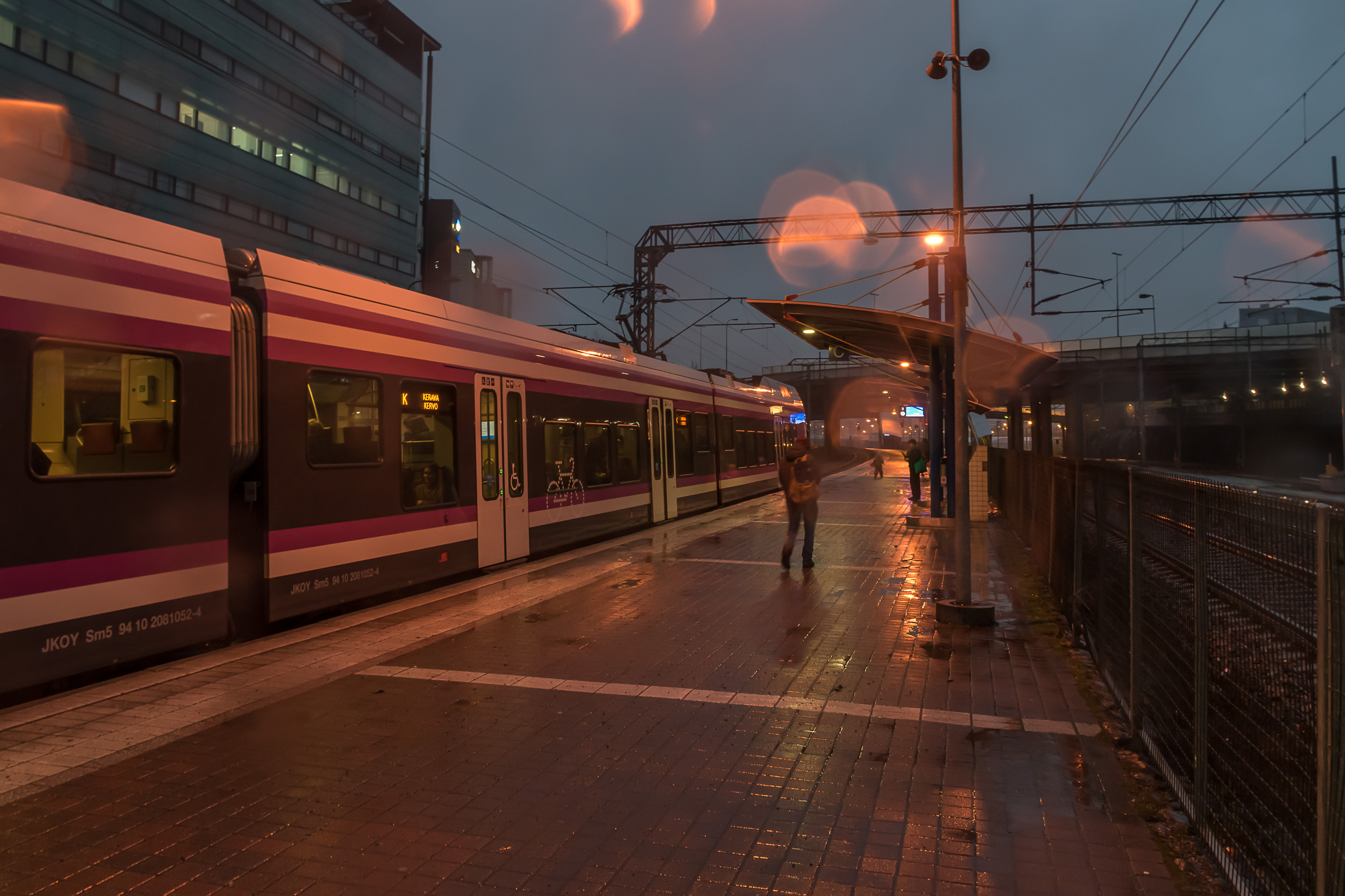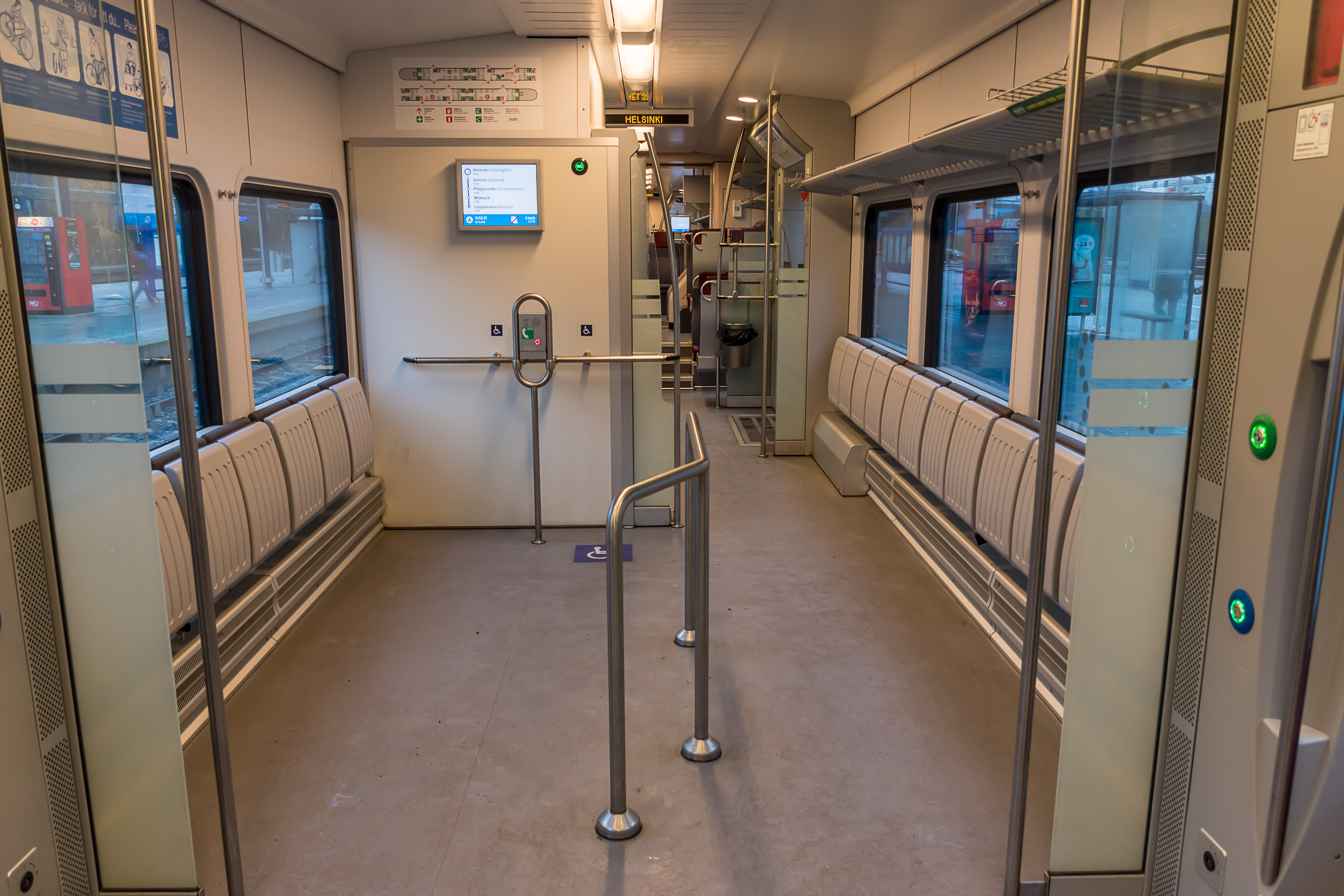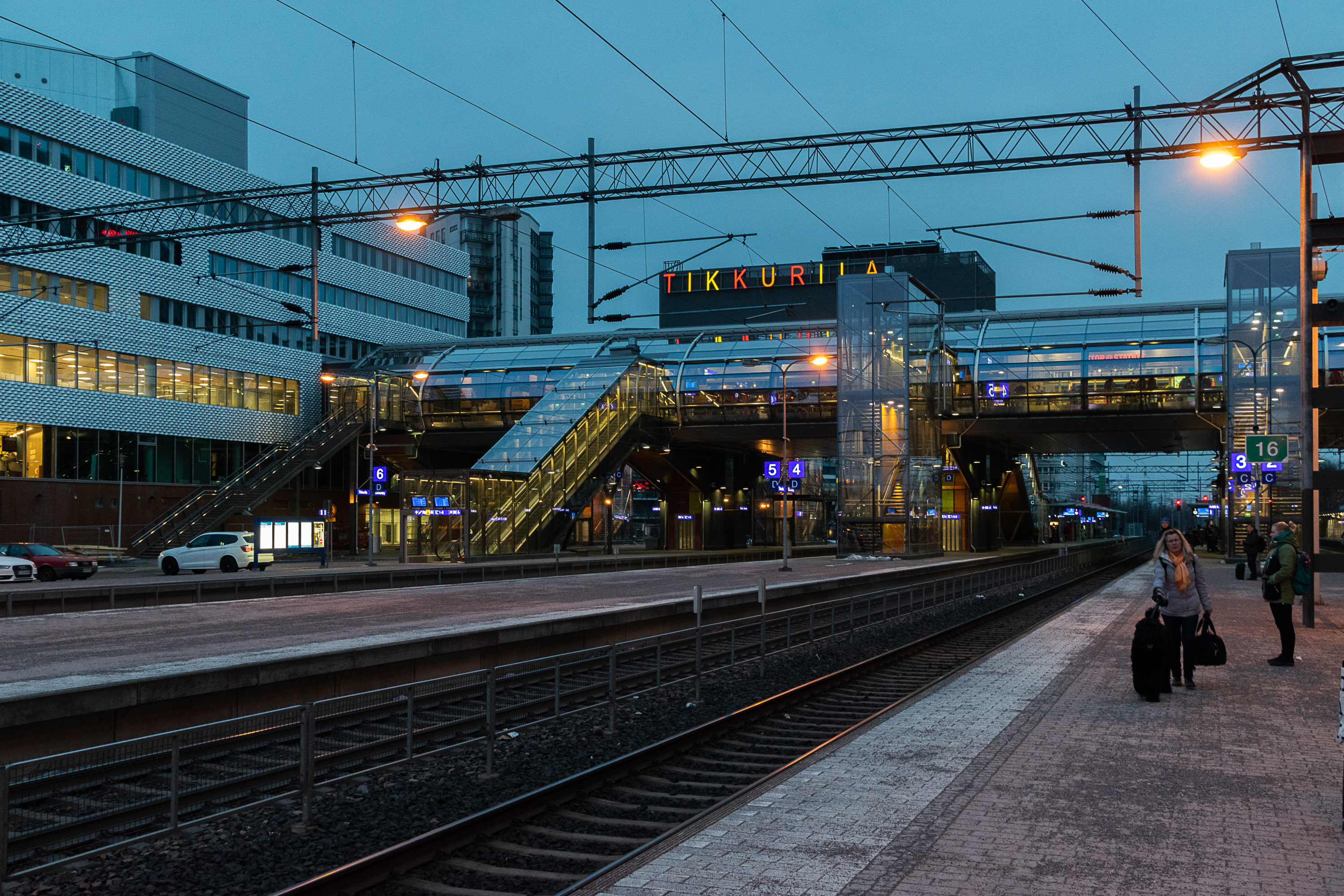 Инфраструктура странций сильно варьируется, и, конечно, вокзал Хельсинки и станция Пасила — самые большие с отрывом. Станция Кило (Kilo) Приморского хода, с которой я езжу на работу каждый день — пример маленькой станции, без путевого развития, только с двумя платформами, информационными табло с информацией о следующем поезде, билетным автоматом, автоматом с закусками (не знаю, кто им пользуется), парой навесов и тремя бесплатными перехватывающими парковками (с ограничением 24 ч) рядом. На некоторых станциях, например, Леппяваара и Тиккурила, есть крупные автобусные терминалы. Перехватывающие парковки есть почти у всех станций, хотя их размер может сильно варьироваться. В сторону Эспоо (по Приморскому ходу) на станции Кауниайнен эти парковки обычно забиты, потому что это последняя станция в зоне B, и с нее можно уехать дешевле, чем с более дальних. У остальных станций обычно можно найти свободные места.