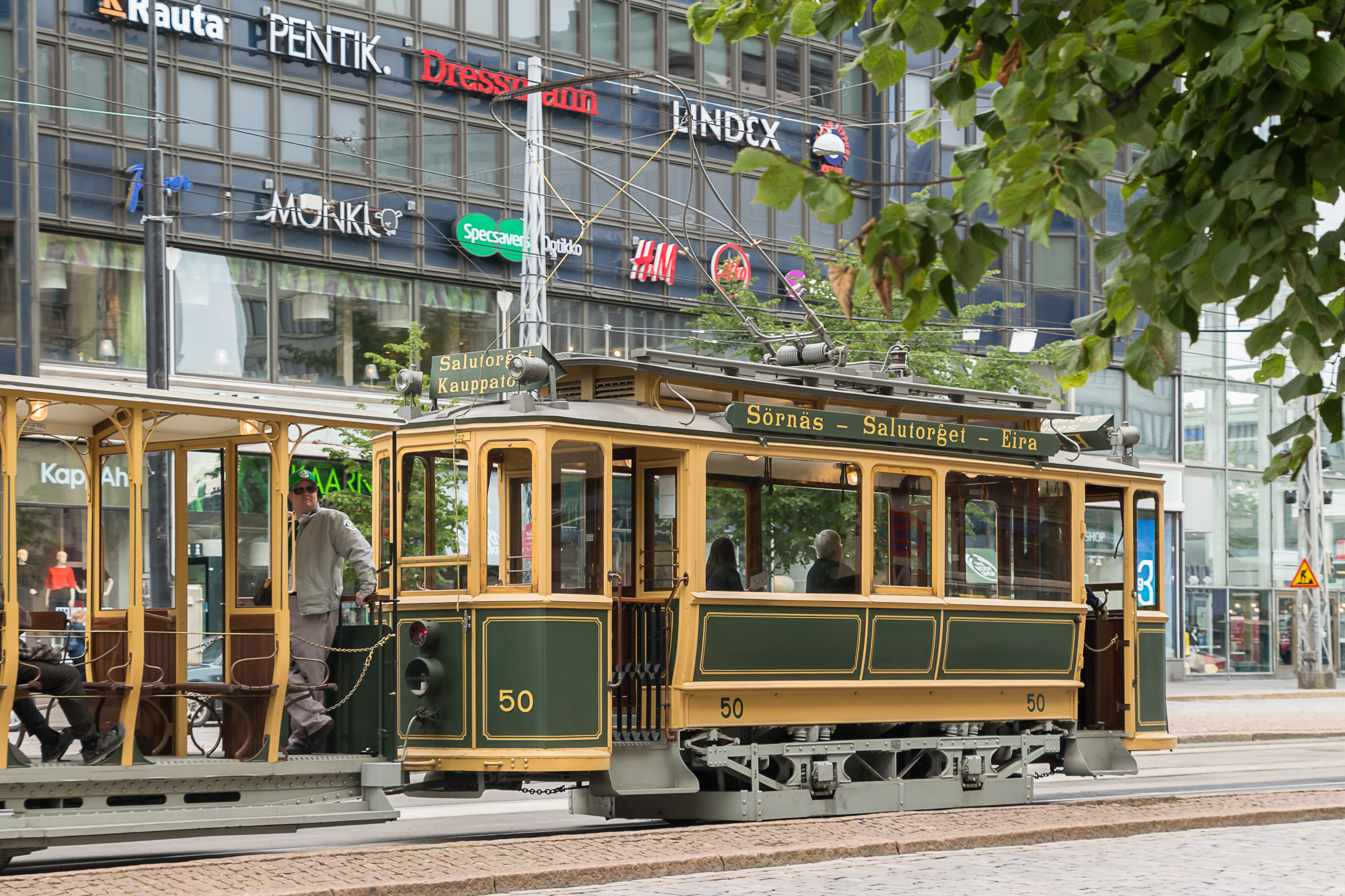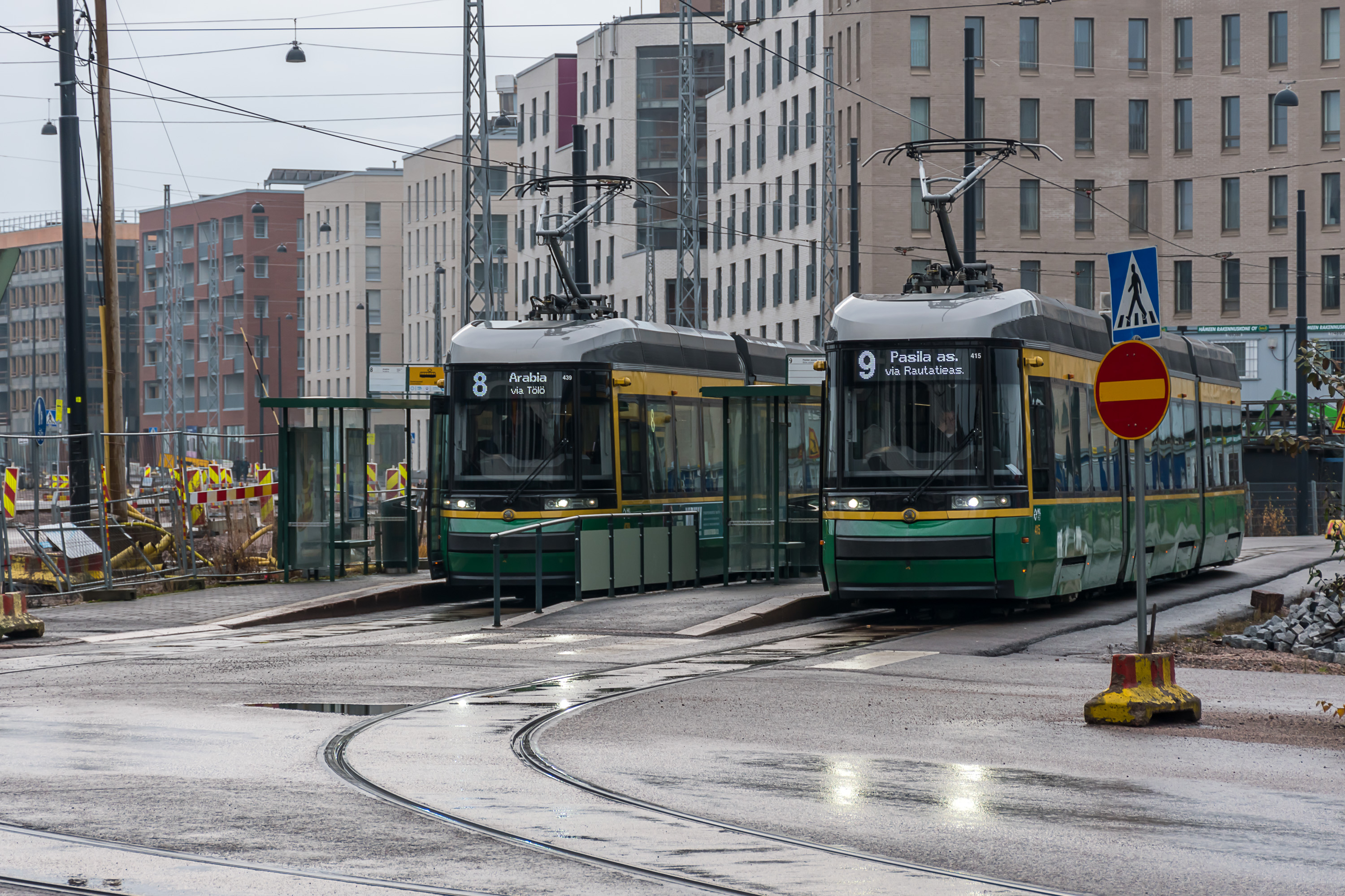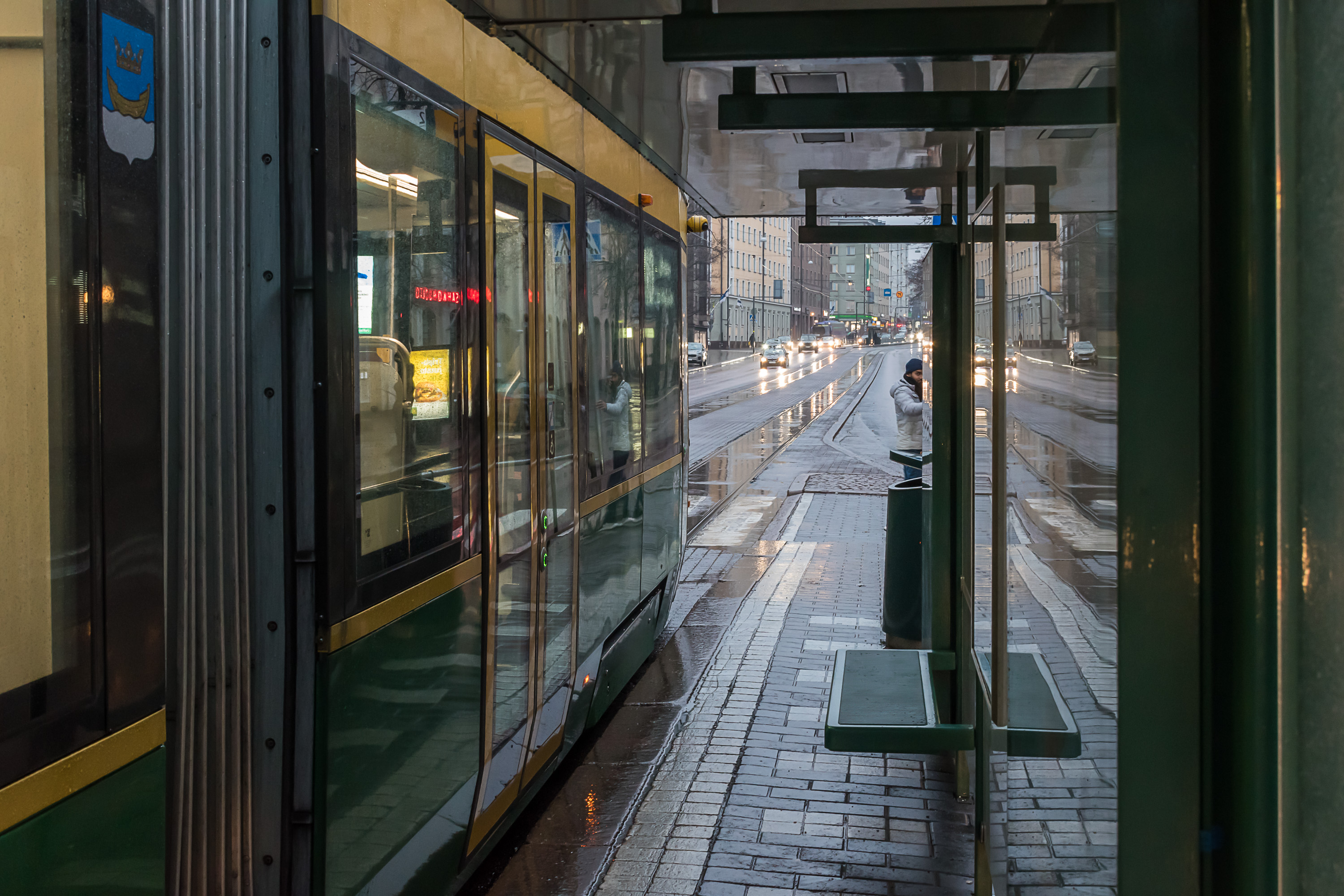 В центре Хельсинки существует довольно плотная трамвайная сеть, продолженная как на крупных улицах, так и в узких переулках. На улице Алексантеринкату (Aleksanterinkatu), главной пешеходной улице Хельсинки, движение разрешено только трамваям и такси. Трамвайные пути по возможности обособлены, и на перекрестках у них обычно бывает приоритет, как и предписано ПДД в большинстве стран; иногда также устанавливаются специальные треугольные светофоры, останавливающие все остальное движение, пока проезжает трамвай. Тем не менее, система неидеальна и трамвай местами может встать в пробку, хотя очень больших пробок в Хельсинки и не бывает.