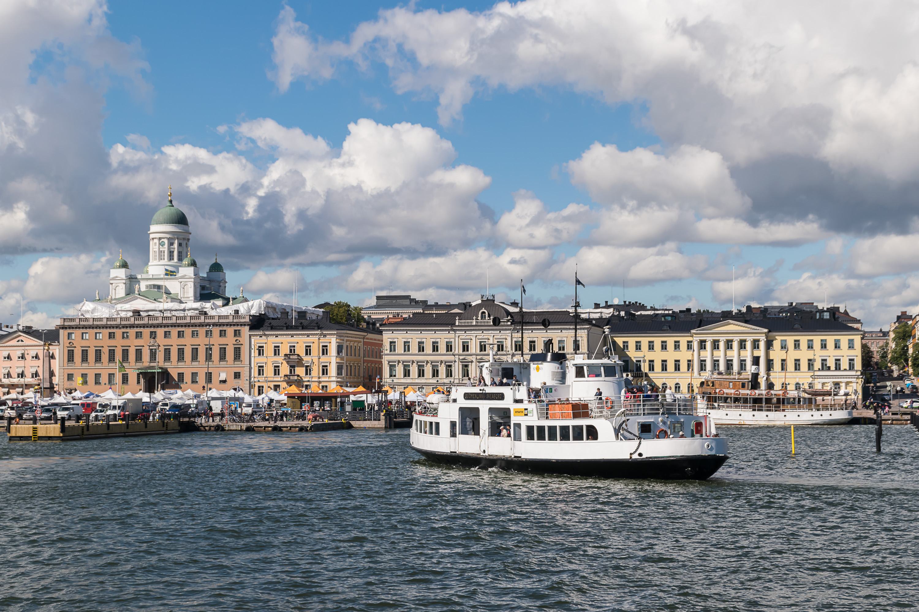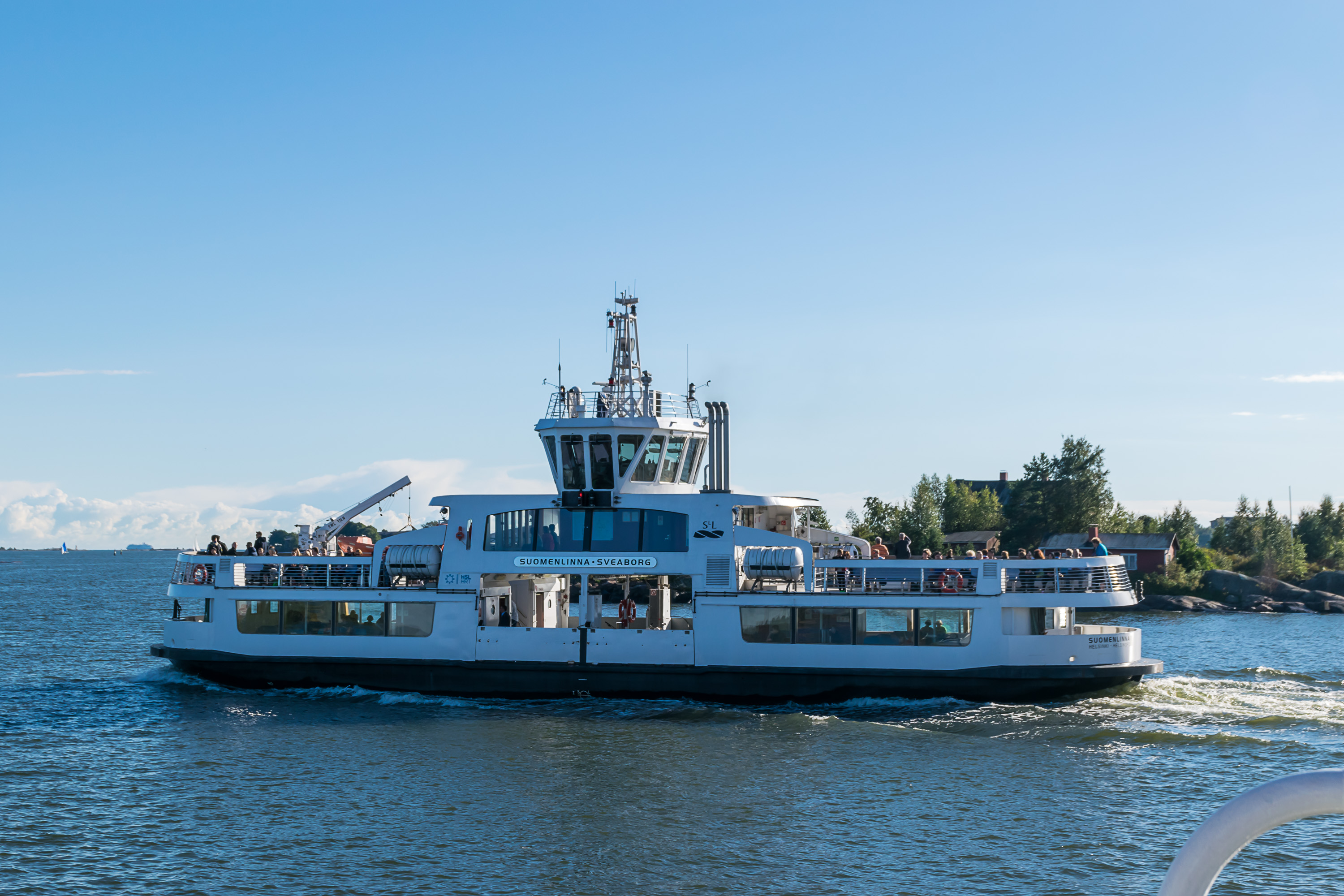 Паром на острова Суоменлинна (Suomenlinna) с Кауппатори (Kauppatori, Рыночная площадь) в центре Хельсинки несколько выбивается из других видов транспорта, но тем не менее это тоже вполне себе официальный городской транспорт под эгидой HSL. Он пересекает 2.5 км моря и идет примерно 15 мин. На паромы может влезать на удивление много пассажиров, особенно если занимать верхнюю палубу, что в зависимости от погоды может быть довольно неприятно.