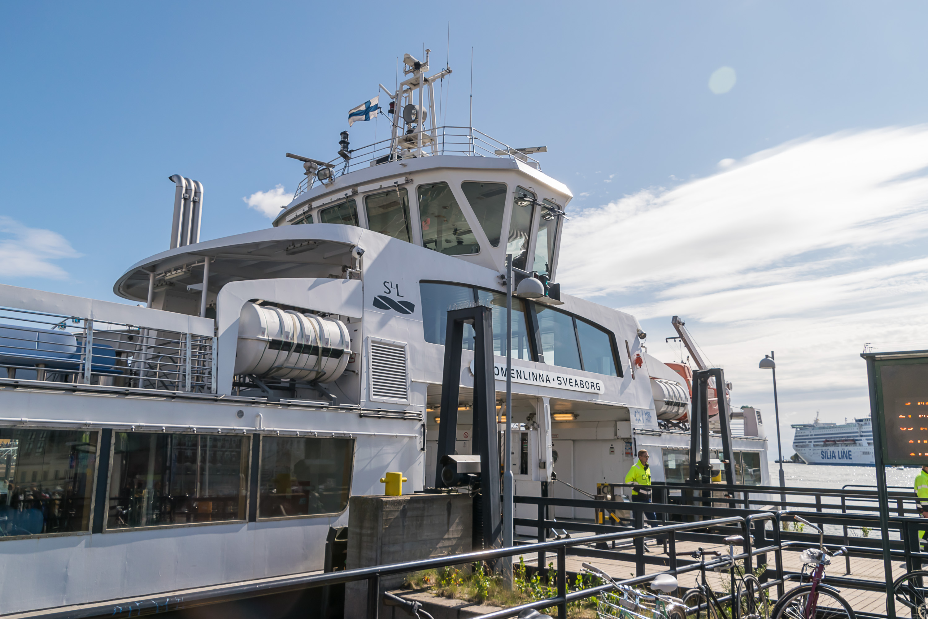 Хотя вокруг Хельсинки есть довольно много островов, и на некоторые из них в сезон ходят теплоходики, это все сугубо частные рейсы сугубо развлекательного назначения; у некоторых (богатых) хельсинкцев на островах имеются дачи, но дачники в общем случае добираются на собственных плавсредствах. А вот Суоменлинна — не только главная туристическая достопримечательность Хельсинки, но также и полноценный жилой район, где проживает около 800 человек. Так что паром — базовая услуга для обеспечения жизнедеятельности суоменлиннцев (хотя на самом деле на Суоменлинну есть также подводный туннель, который может использоваться аварийными службами при необходимости).