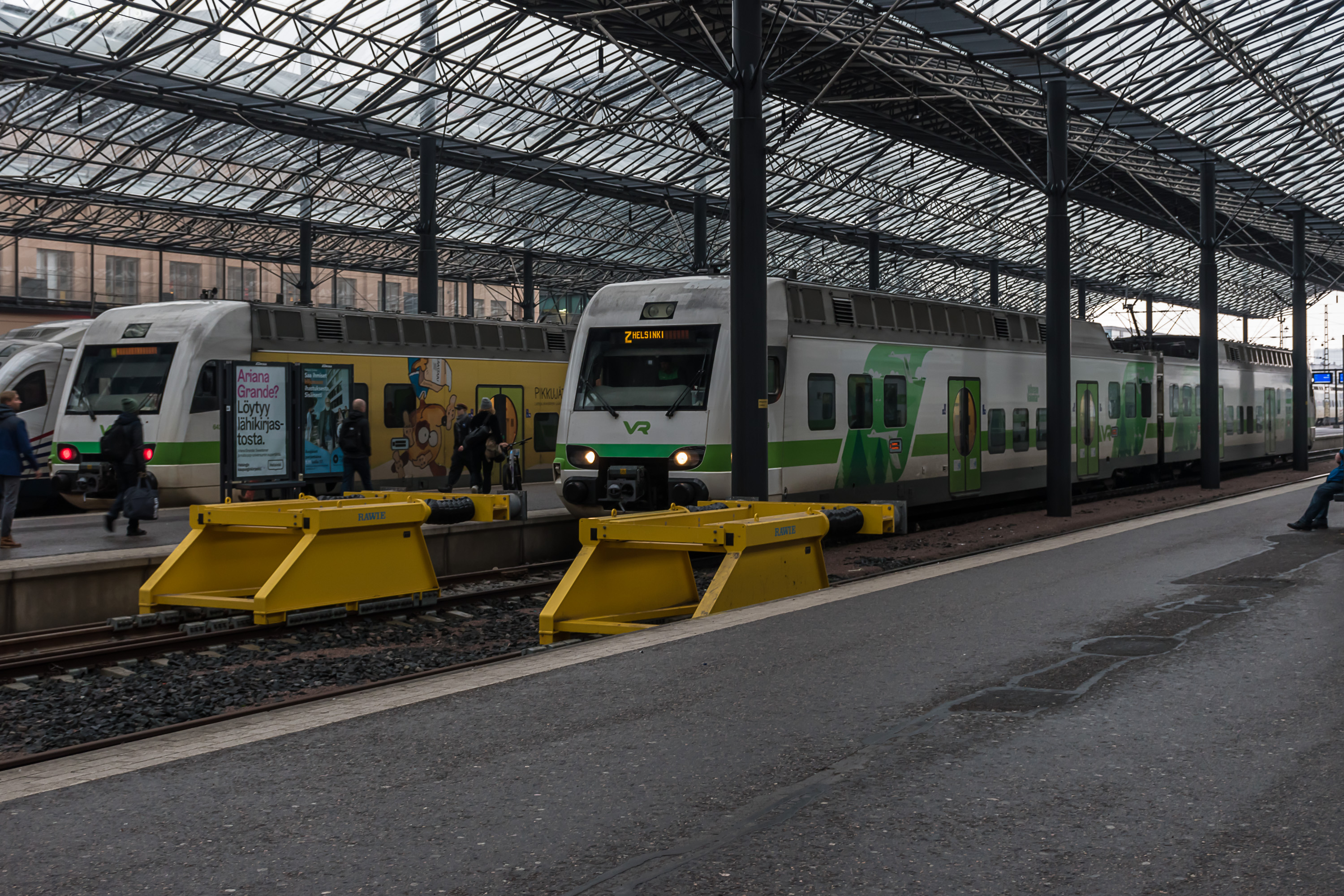 Билеты HSL действительны в пределах еще нескольких станций за Керавой, вплоть до станции Йокела в Туусуле. Дальше нужен билет VR. Они покупаются на сайте VR, в их приложении или в их билетном автомате (зеленого цвета, в отличие от синих HSL-овских), как и билеты на поезда дальнего следования. У VR есть своя система скидок и проездных. В отличие от поездов дальнего следования, дальние электрички для VR невыгодны, и их рейсы закупает у VR государство (в лице Väylävirasto, Путевого ведомства).