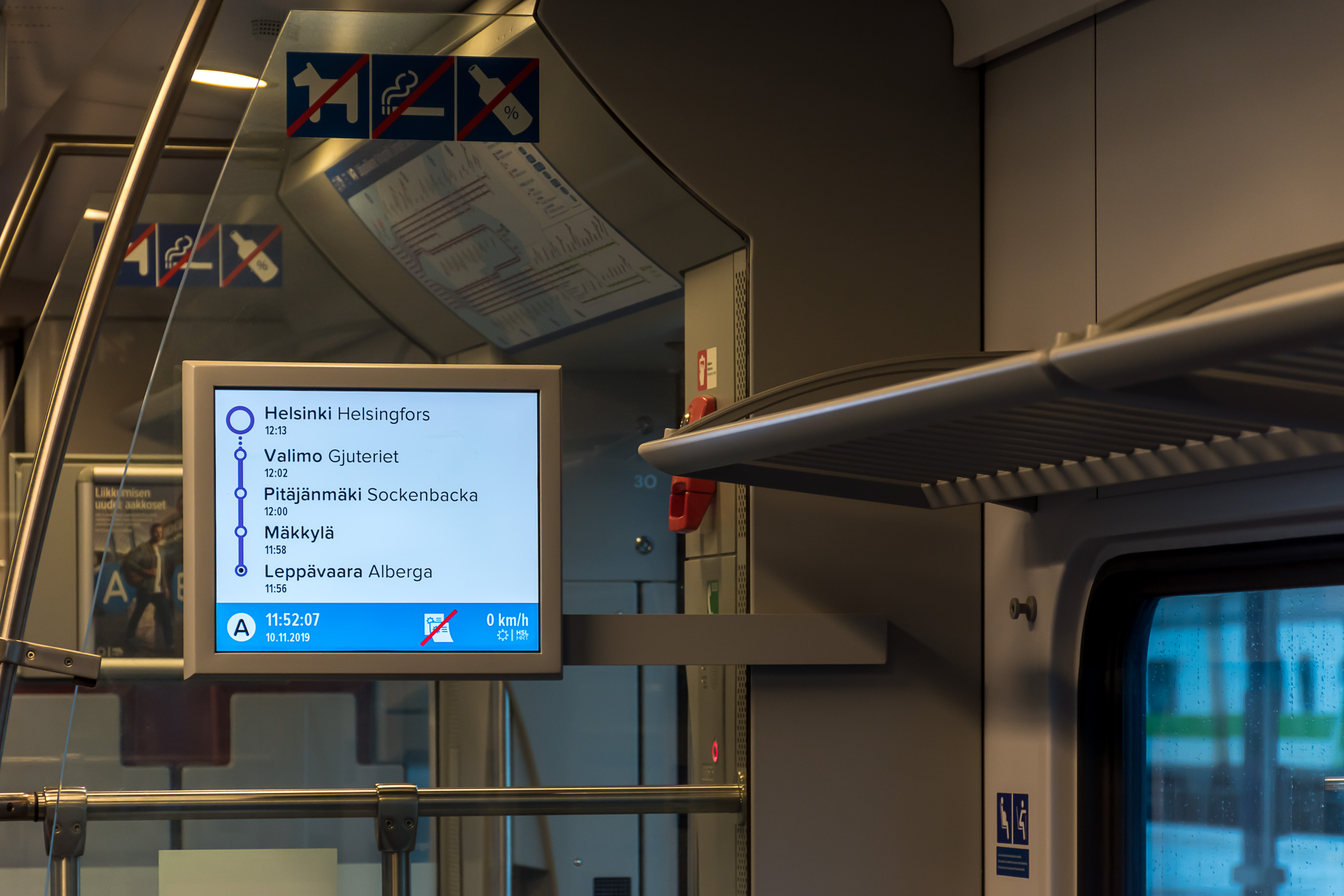 - Z: Хельсинки-Лахти, 130 км, 1:03-1:12, интервалы 60 мин; единственная электричка на Лахтинском обходе (Lahden oikorata, линия Керава-Лахти)