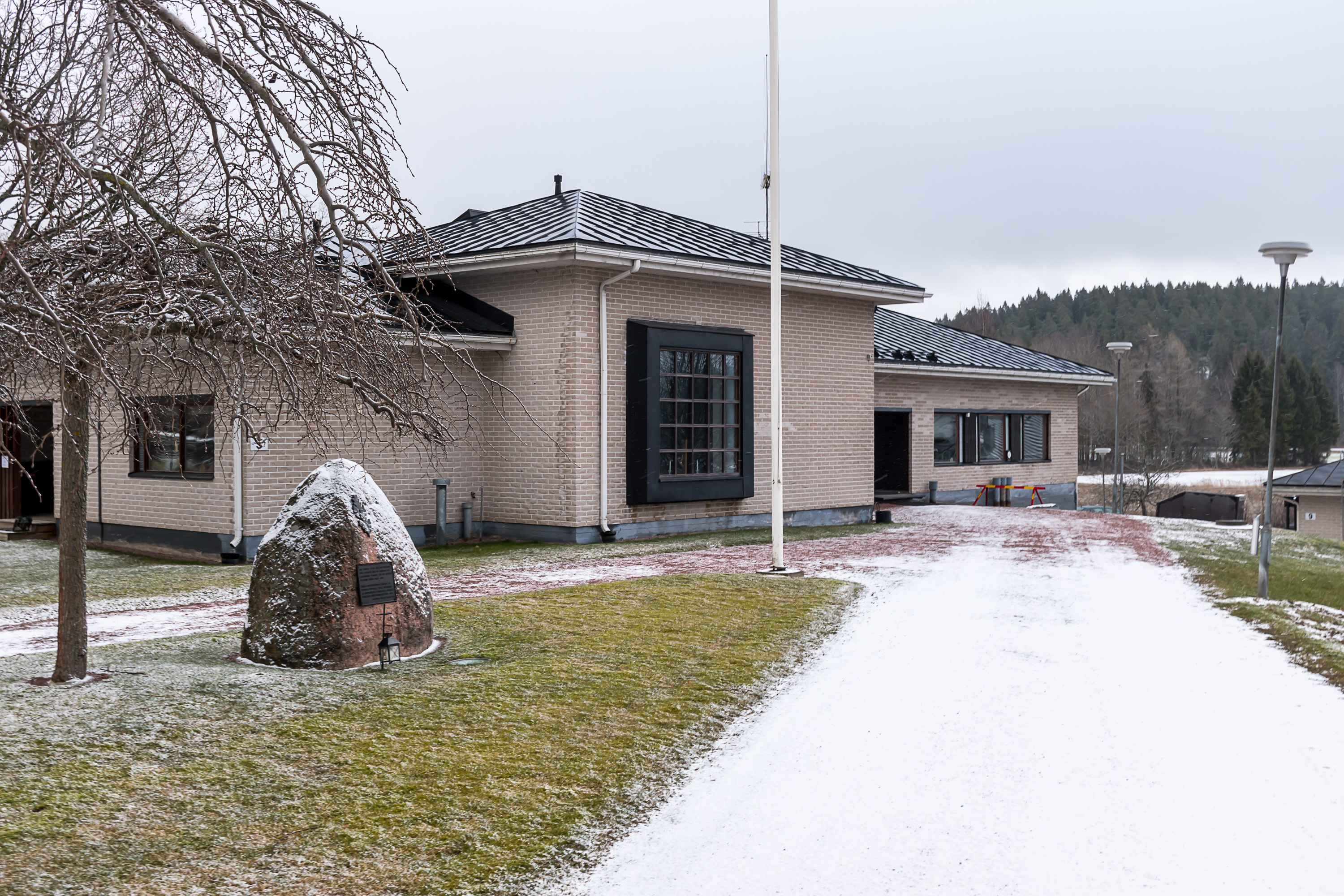18. На фото вроде бы школа, где-то рядом должна быть поликлиника. Или наоборот. Школы в Сиунтио две — финскоязычная и шведоязычная. Это вроде бы шведоязычная.