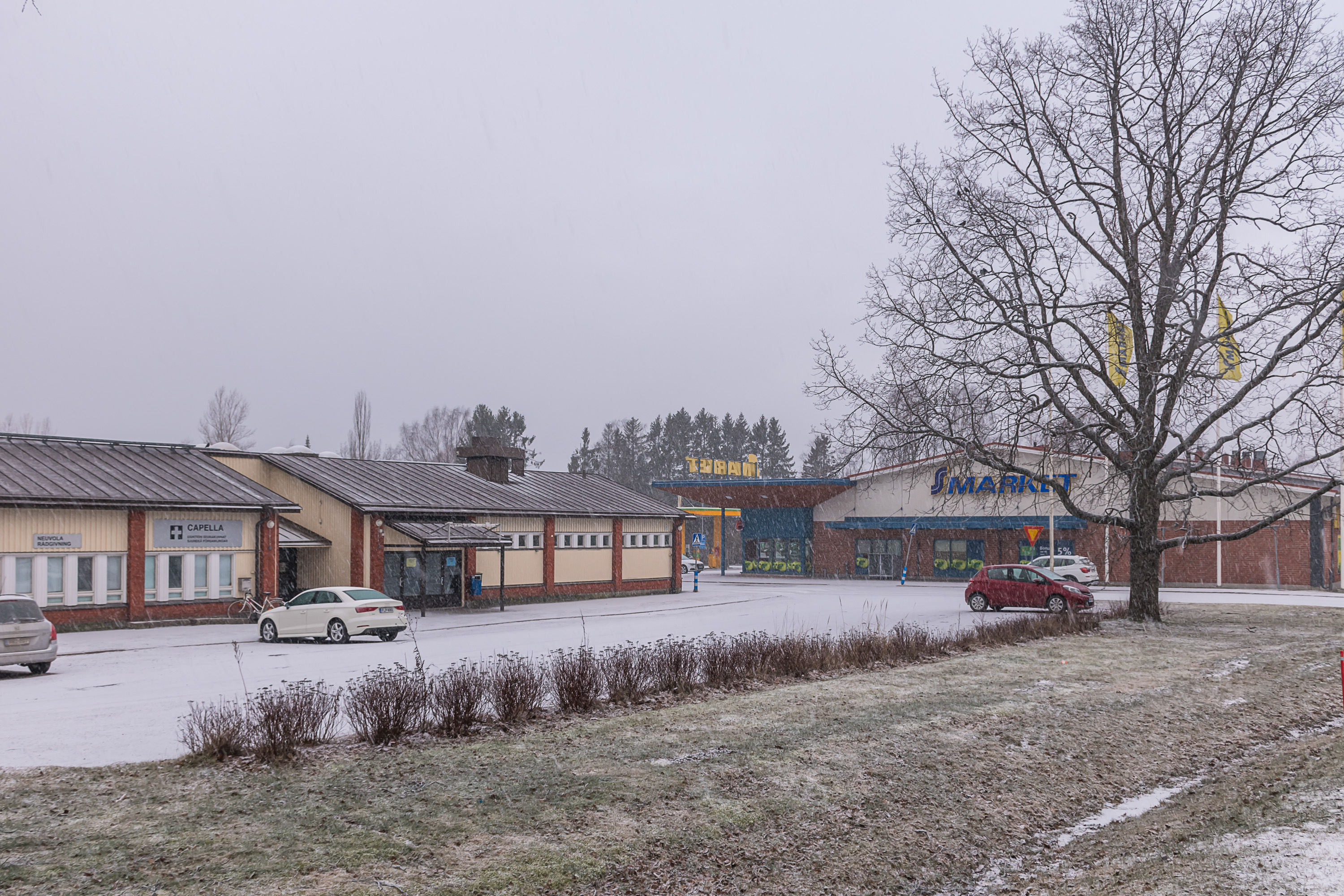 11. Магазинчик-«киоски» в станционном поселке (фото не строго в хронологическом порядке, поэтому снег то есть, то нет). Такие магазинчики служат заодно отделениями почты, но интересно, что тут это не сетевой R-Kioski, а чей-то независимый магазинчик.