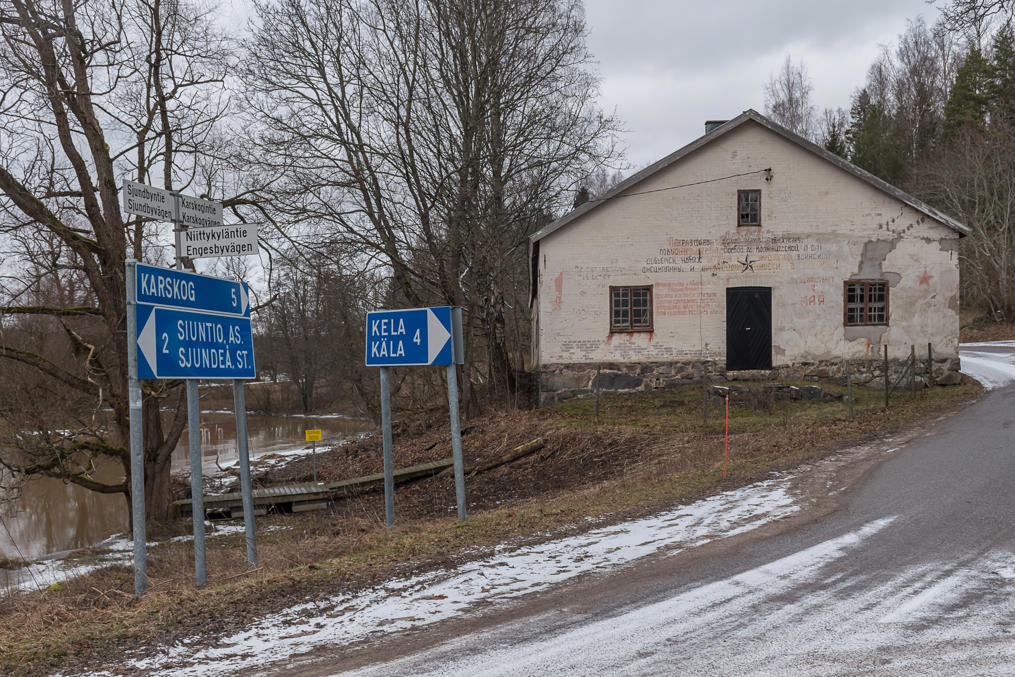 46. Мне не хотелось ждать два часа обратный автобус из Сиунтио до Киркконумми, и я отправился туда пешком (в итоге пройдя 28 км за день — несколько лет столько за раз не ходил). Дорога была в основном малопримечательная. Встретилась усадьба Кела (Kela) — забавное название, так как Кела — это вообще-то финская социальная служба, которая заведует большинством видов пособий. Впрочем, в данном случае изначальным названием явно было шведское Чела (Käla). Саму усадьбу я не заметил, зато заметил огромный роскошник коровник 1901 года, где сейчас вроде как временами действует летнее кафе и проходят какие-то мероприятия.