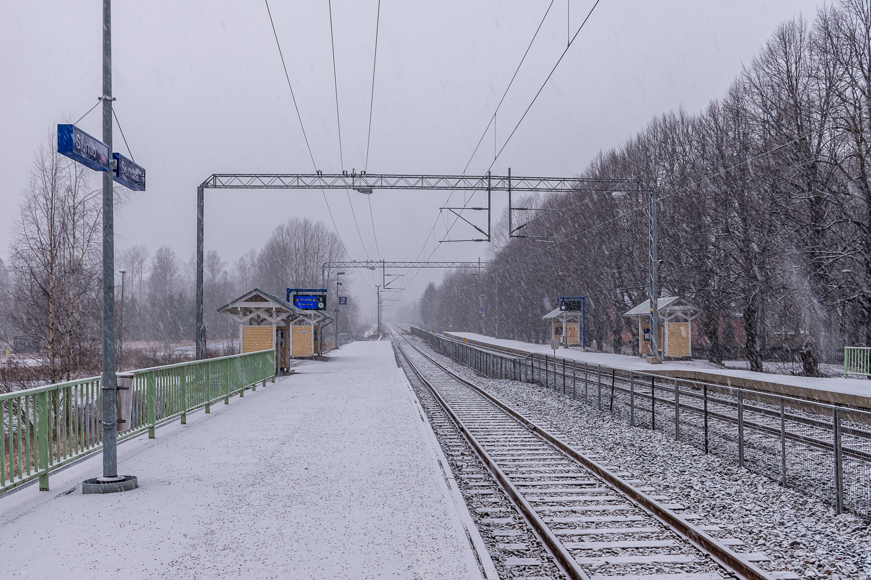 23. И да, станция! Сиунтио примечателен тем, что сюда можно с самого вокзала Хельсинки доехать на электричке. Пригородное движение в Хельсинки в целом рассчитано на значительно более плотно населенные места, и электрички на запад, по Приморскому ходу, до Карьяа и Инкоо в 2016 году порезали. Остались до Сиунтио — муниципалитет, собственно, тогда так и перепугался, что присоединился к зоне хельсинкского транспорта HSL, лишь бы электрички остались. Электричек все равно мало — маршрут Y ходит только по будням, по 2-3 рейса утром и вечером (также пара ранних/поздних рейсов маршрутов U и L); 45-50 мин в пути. Я бы, конечно, предпочел до Сиунтио ехать на электричке, но была суббота, пришлось с пересадкой в Киркконумми на автобус.