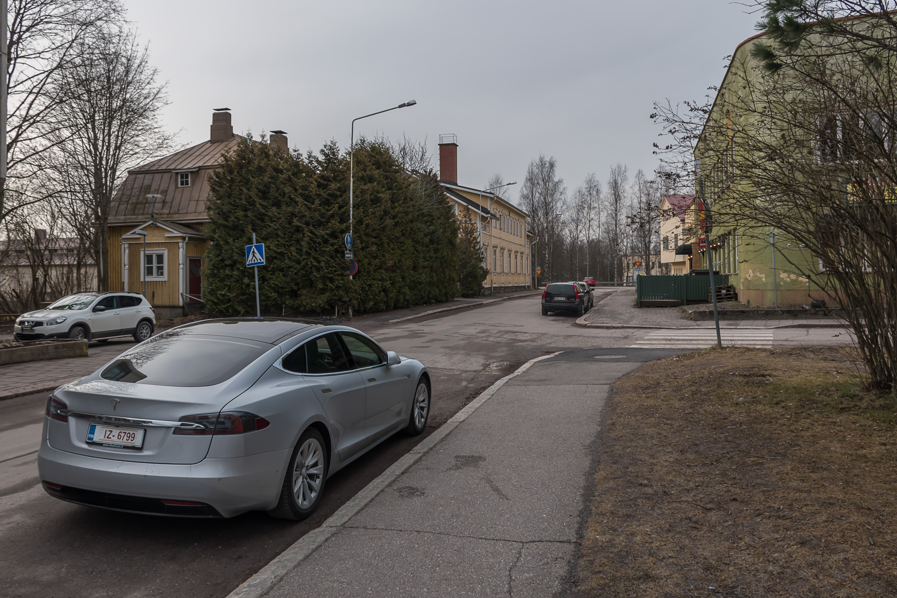 32. Тесла в Карккиле смотрится не очень к месту. Еще и свежекупленная, видимо — на транзитных номерах.