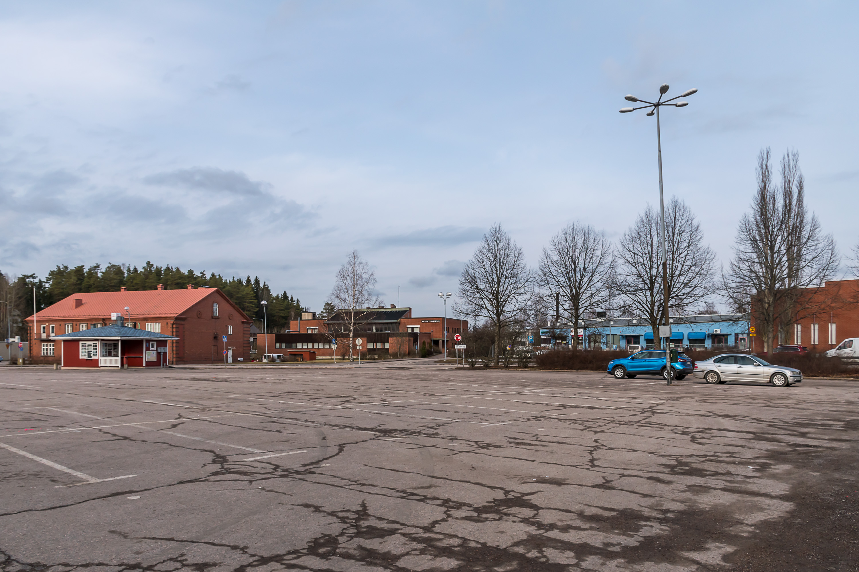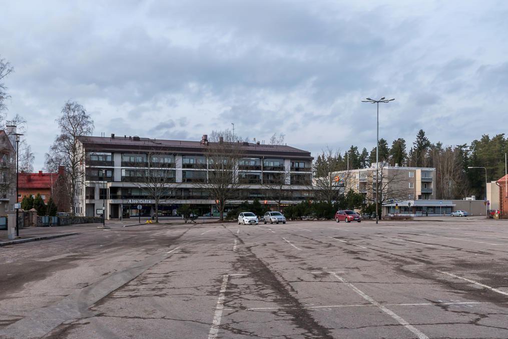 16. Ну а теперь центр Карккилы. Это местная тори (центральная/рыночная площадь), пустое море потрескавшегося асфальта, с забегаловкой-грилли на краю.