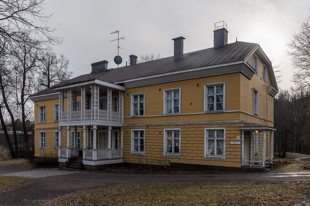 7. Дом Бремера рядом с бывшей заводской конторой. Йозеф Бремер (Josef Bremer) был владельцем Хёгфорсского завода в 1836-1876 годах. Здание теперь относится к Заводской гостинице (Tehtaan hotelli).