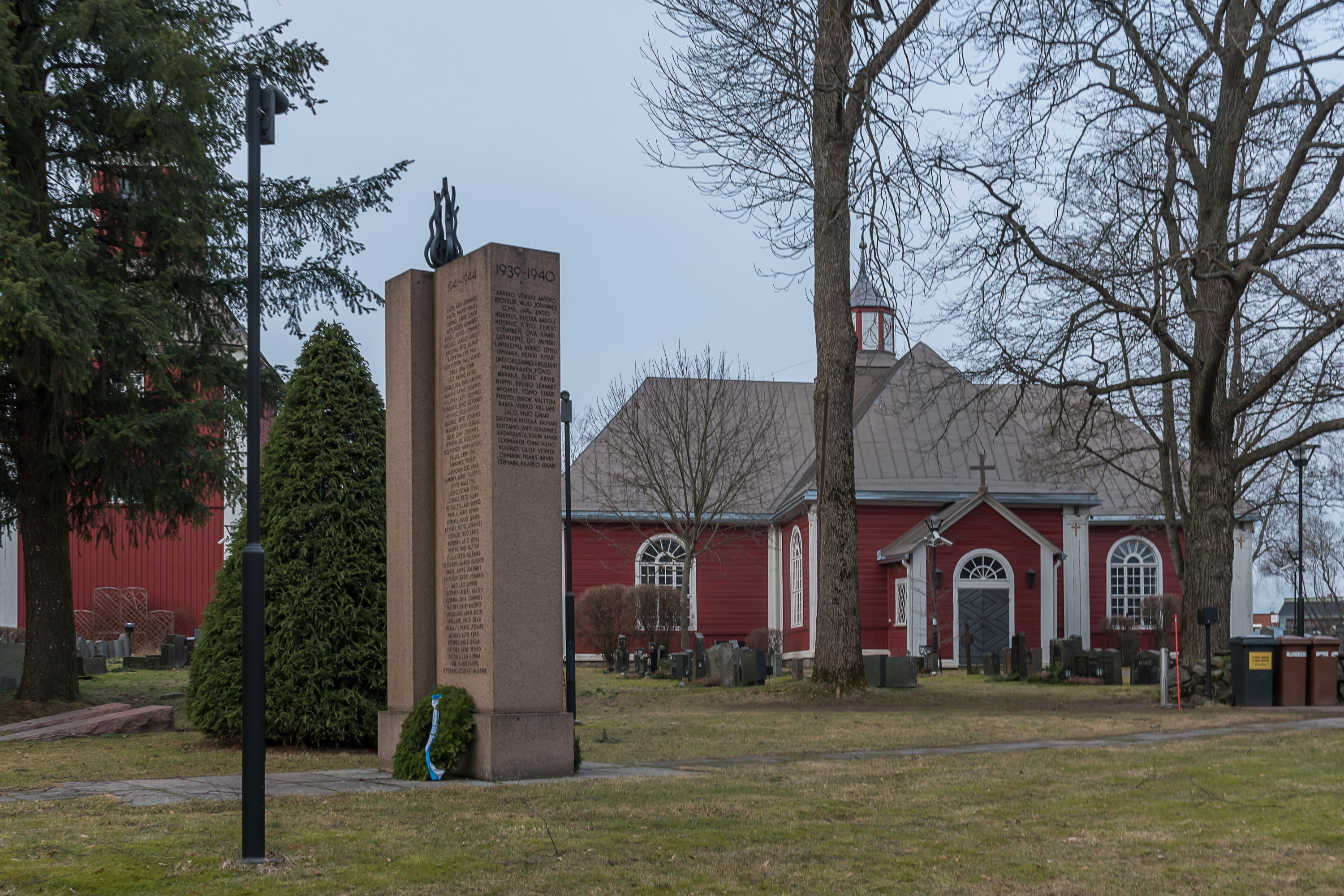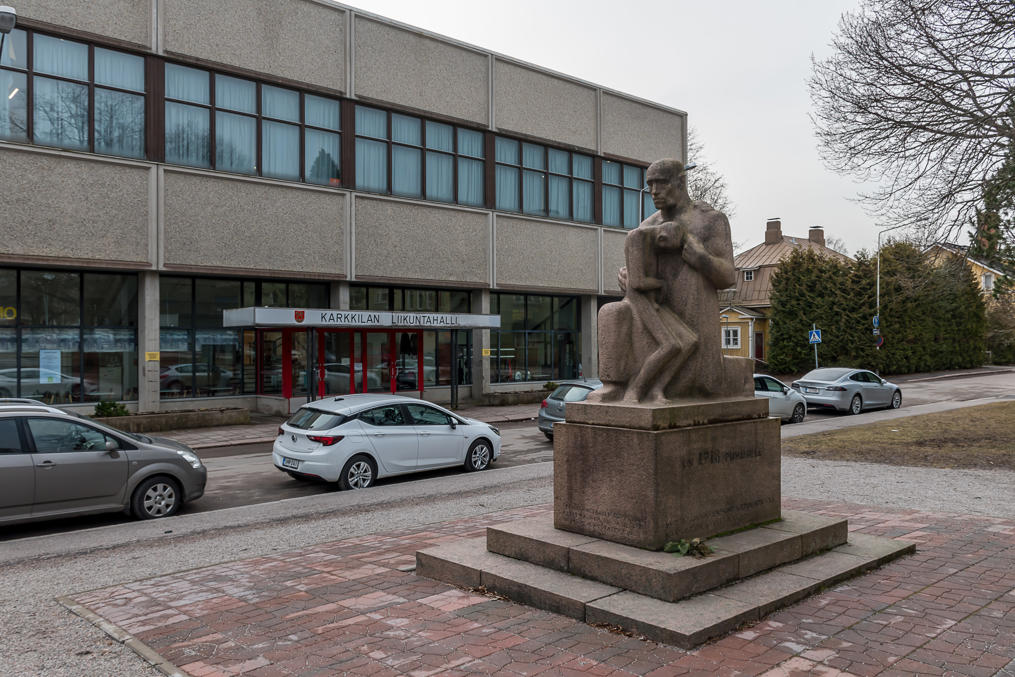 35. Памятник красным, проигравшим в кровавой финской Гражданской войне 1918 года. Весьма примечательно и необычно, что памятник красным стоит тут прямо посреди города, в то время как памятника белым в городе нет вовсе; в городах Остроботнии, где я прожил первые свои полтора года в Финляндии, такое было бы немыслимо. Карккила всегда была промышленным городом, и рабочие всегда были здесь основной силой. И сейчас партия Левый Cоюз (Vasemmistoliitto) занимает большинство в местном муниципальном совете, даже несмотря на то, что традиционные левые партии сейчас не очень популярны, а Левый Союз и в целом пользуется весьма скромной поддержкой в стране (это самая левая из мэйнстримных партий; еще левее только коммунисты, которые в Финляндии совершенно маргинальны). Памятник установлен в 1948 году.